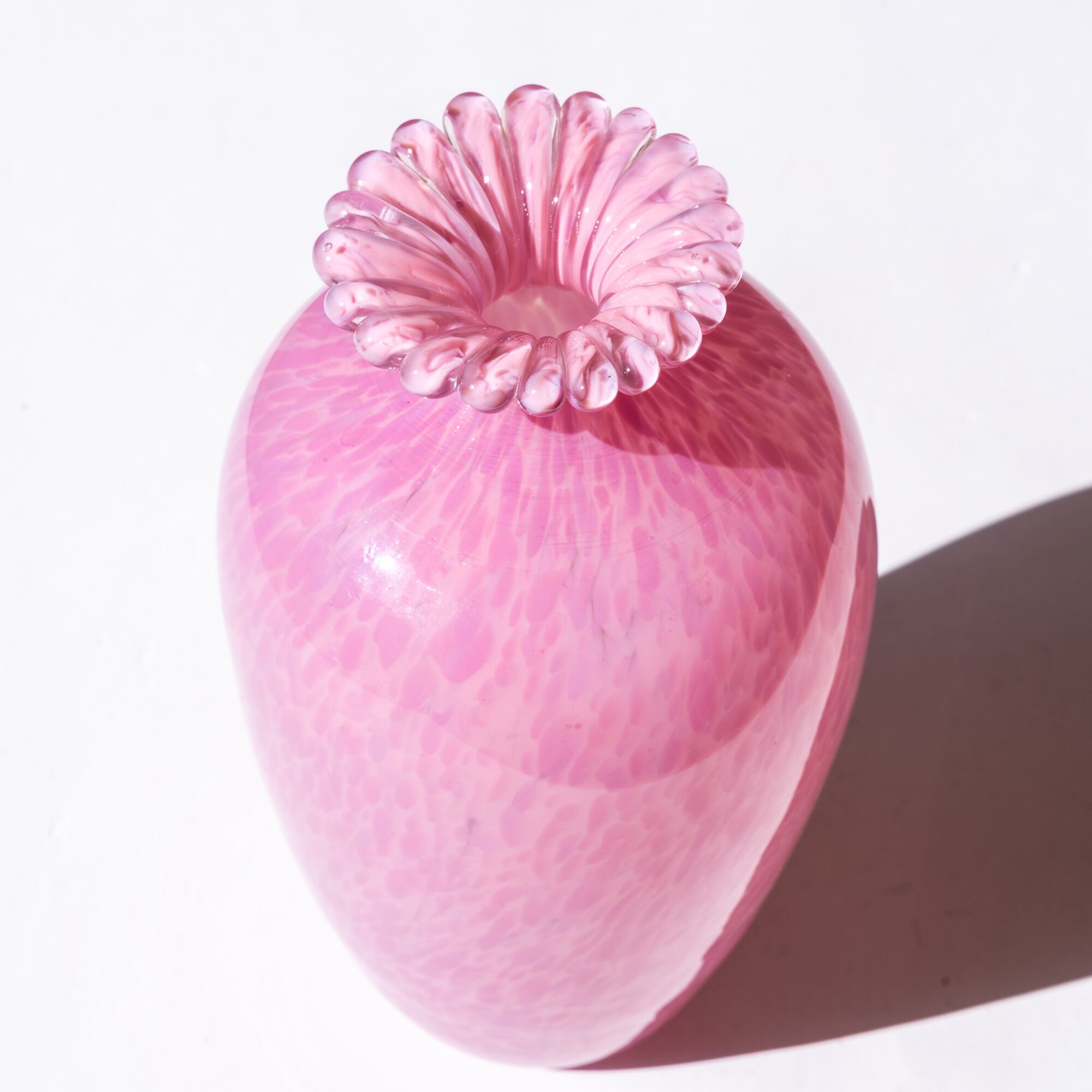 つぼ型の癖ある形で、上からみると花開いたようなデザイン。