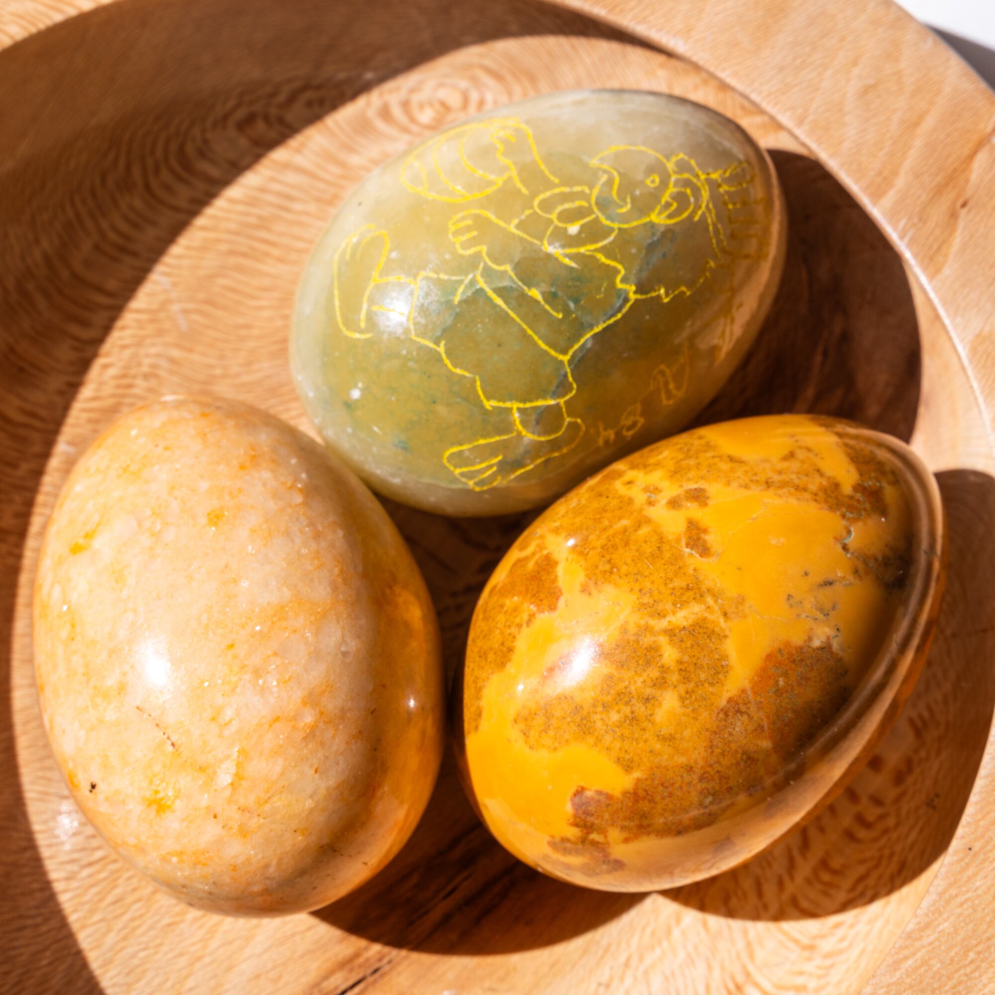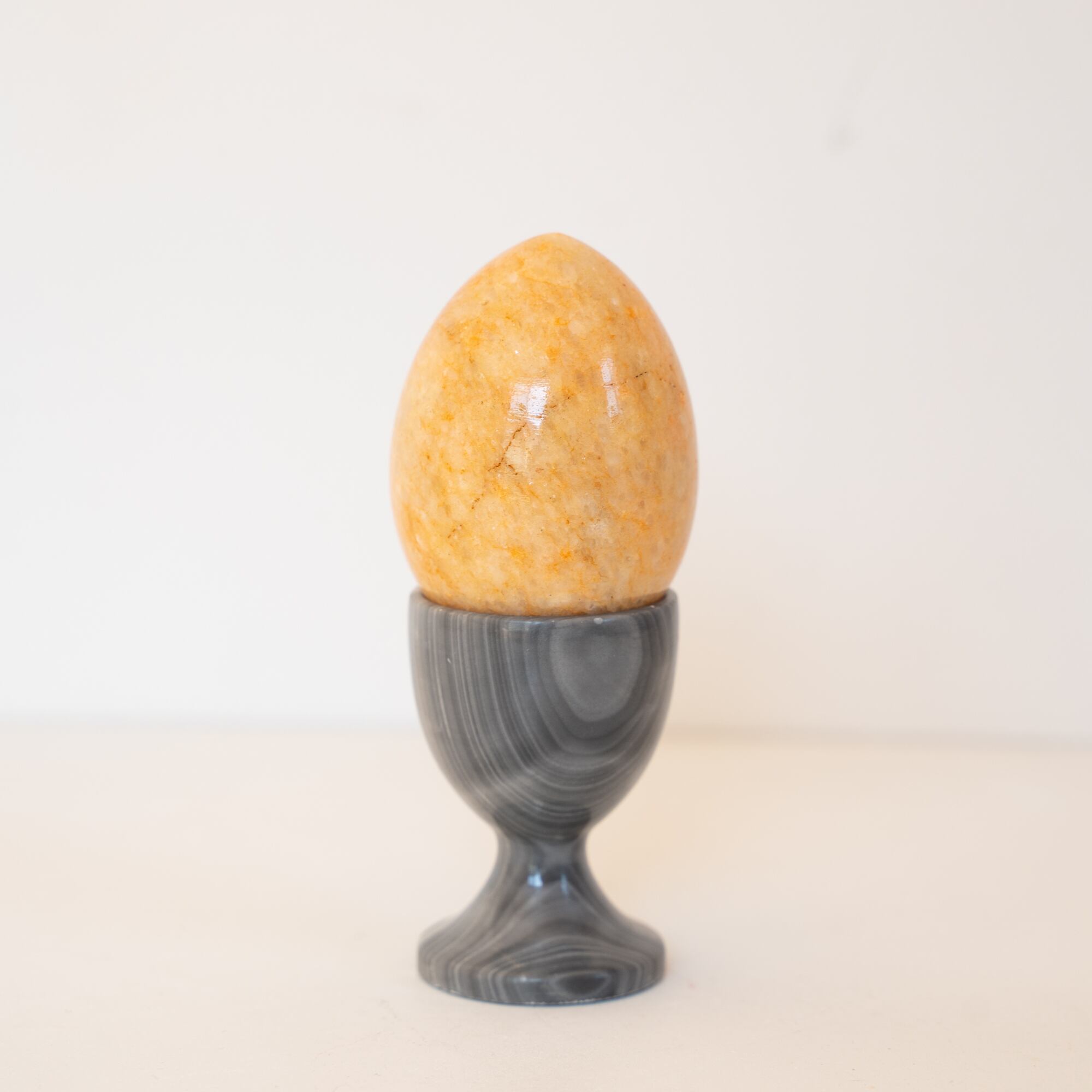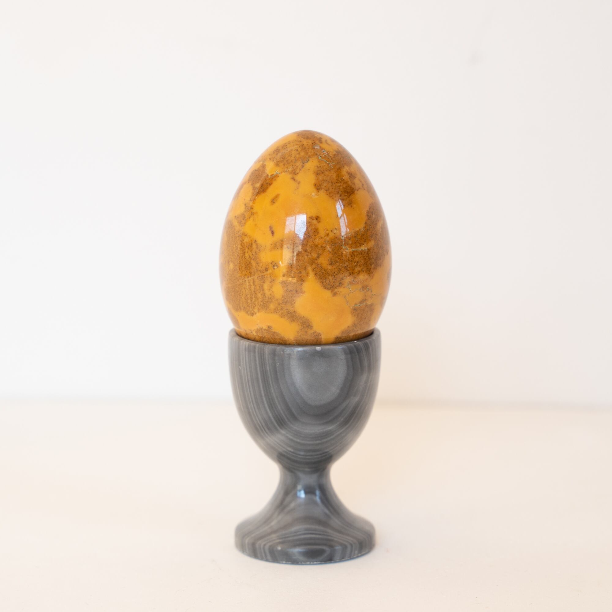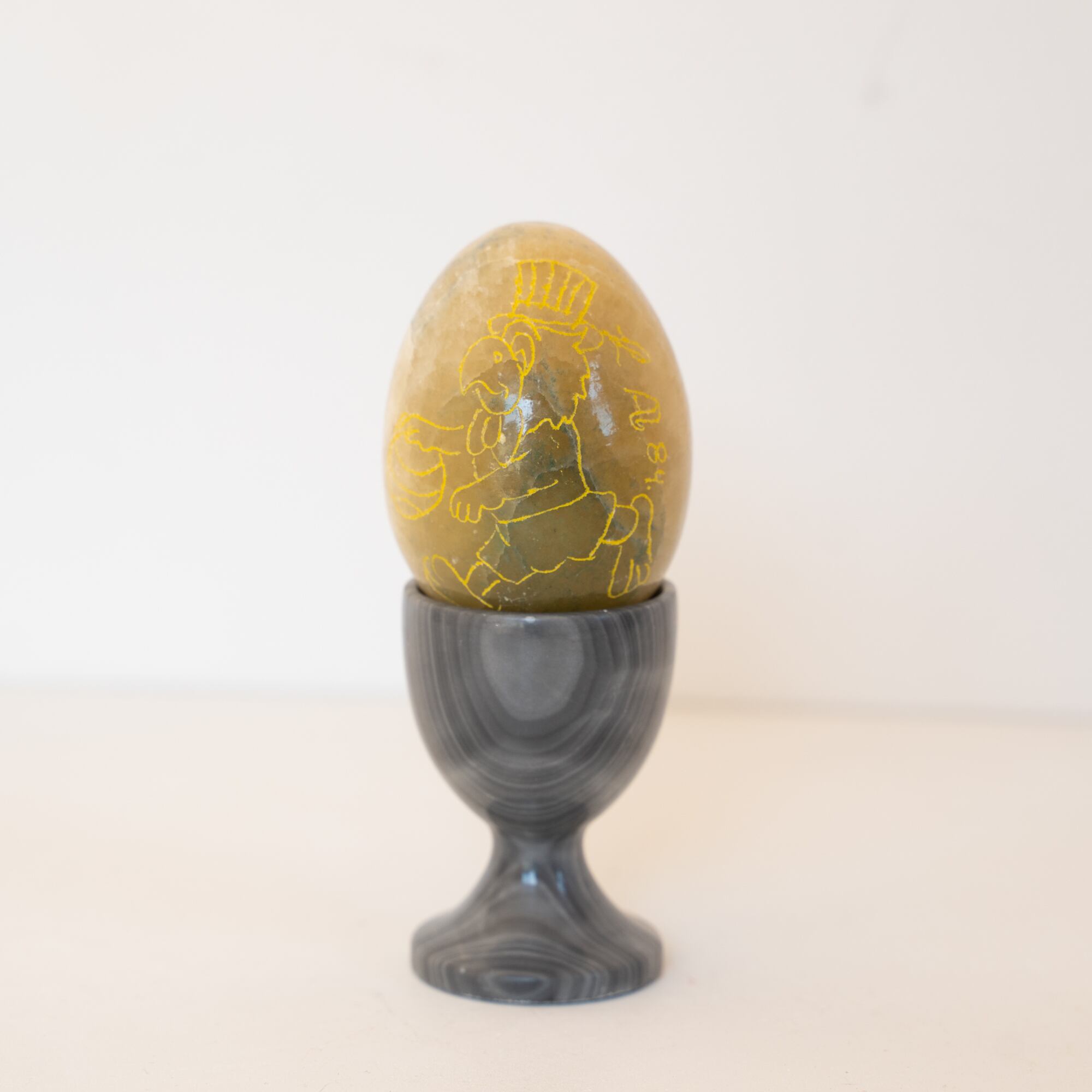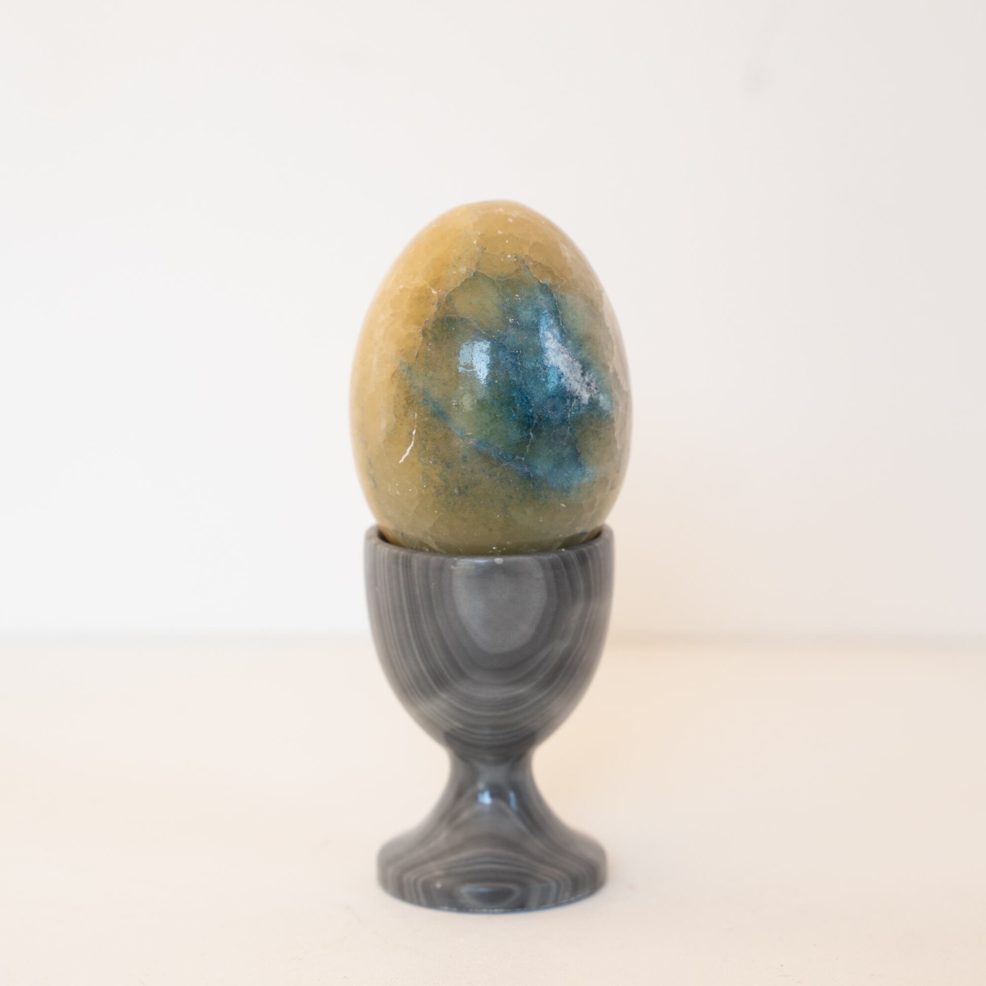 エッグスタンド(別売り)の上にのせると高さも出て、安定して飾ることができます。