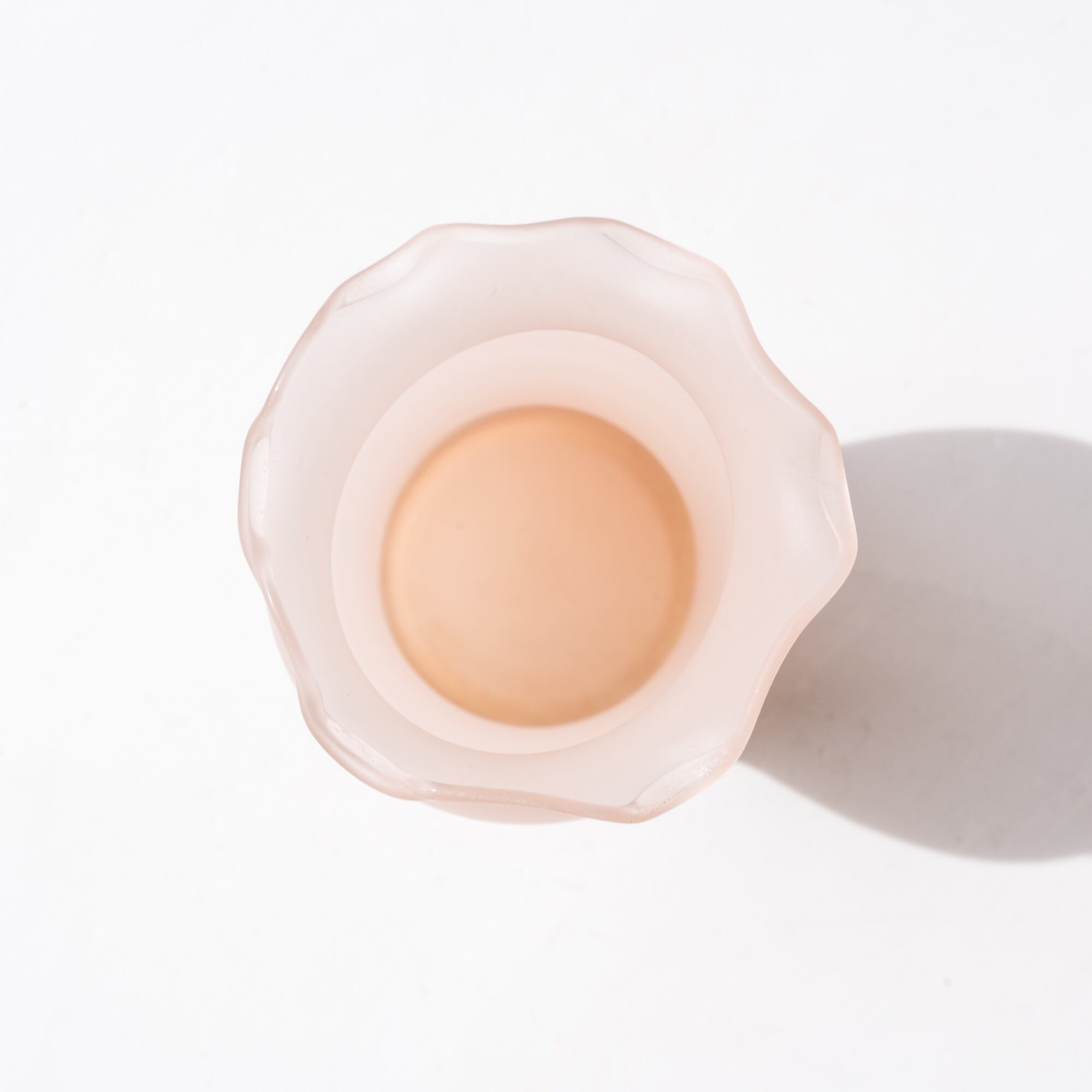 マットな質感のピンク、フリルのデザインが魅力的なアイテム。