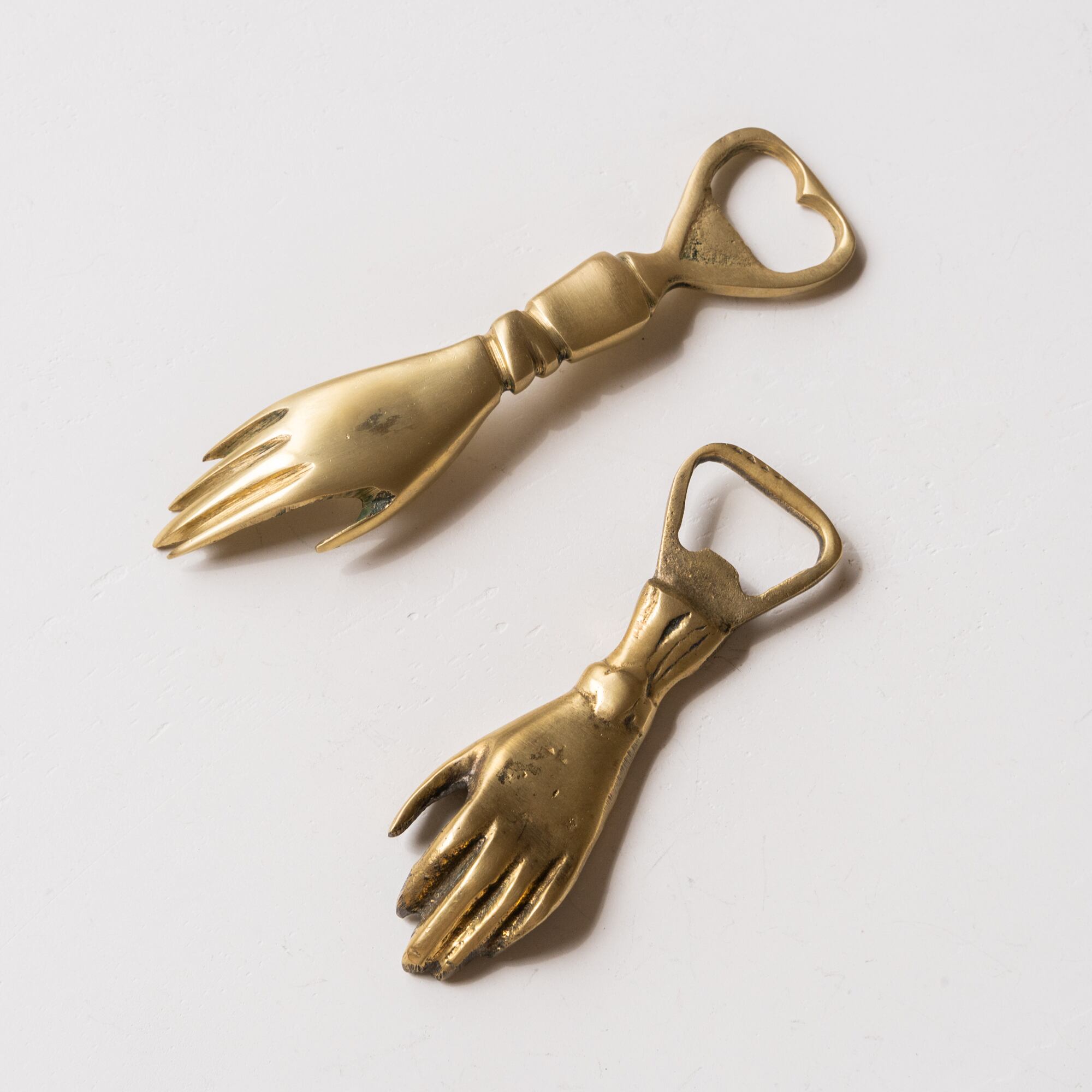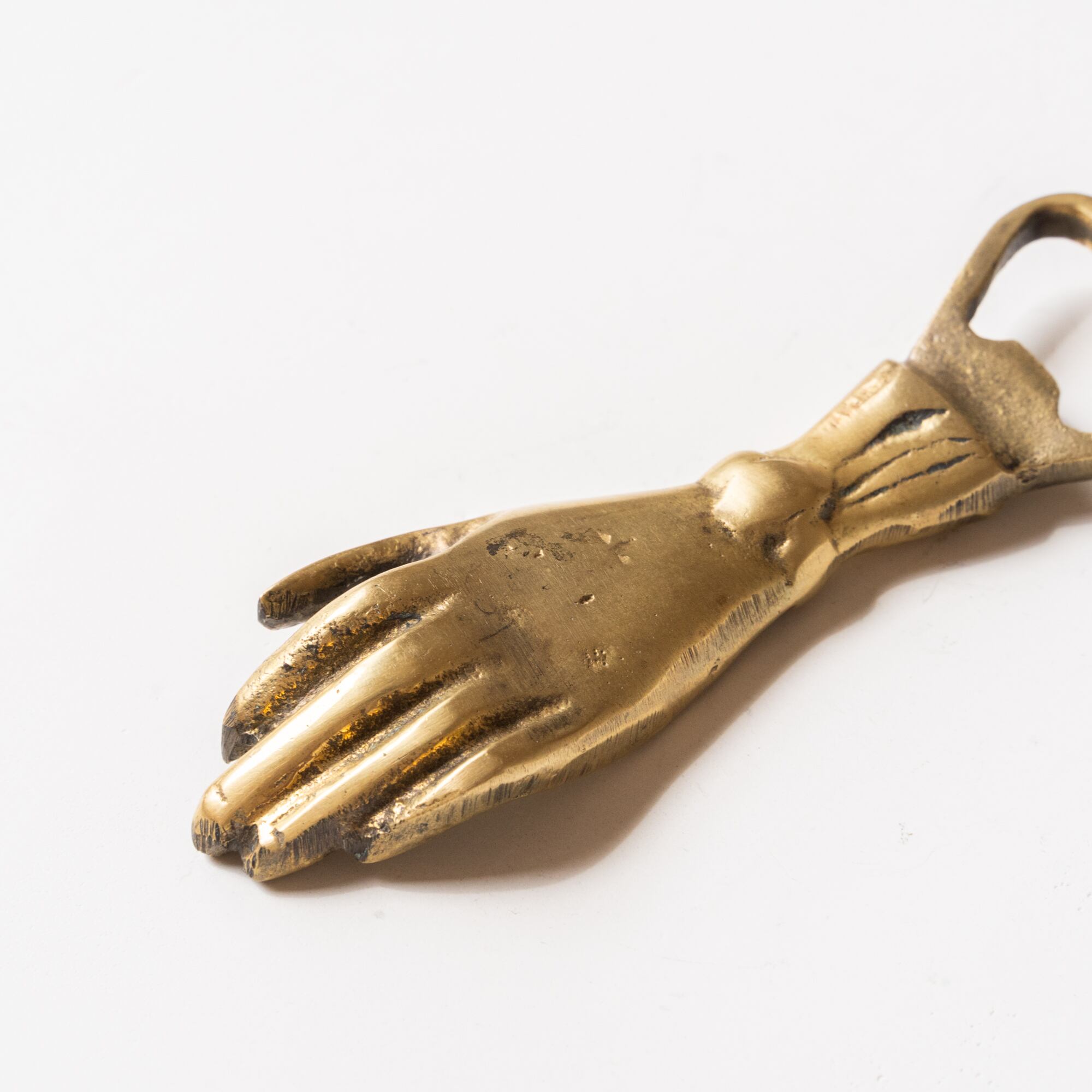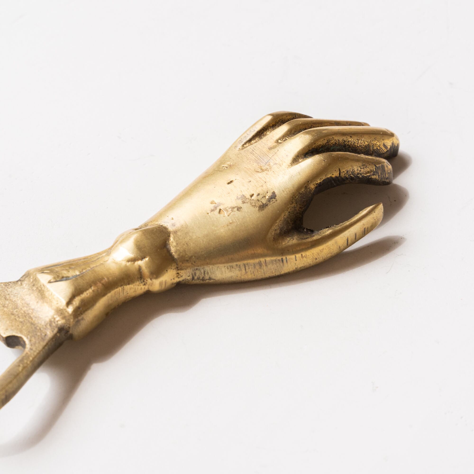 ハンドモチーフのデザイン、真鍮の味わい深さが魅力的。