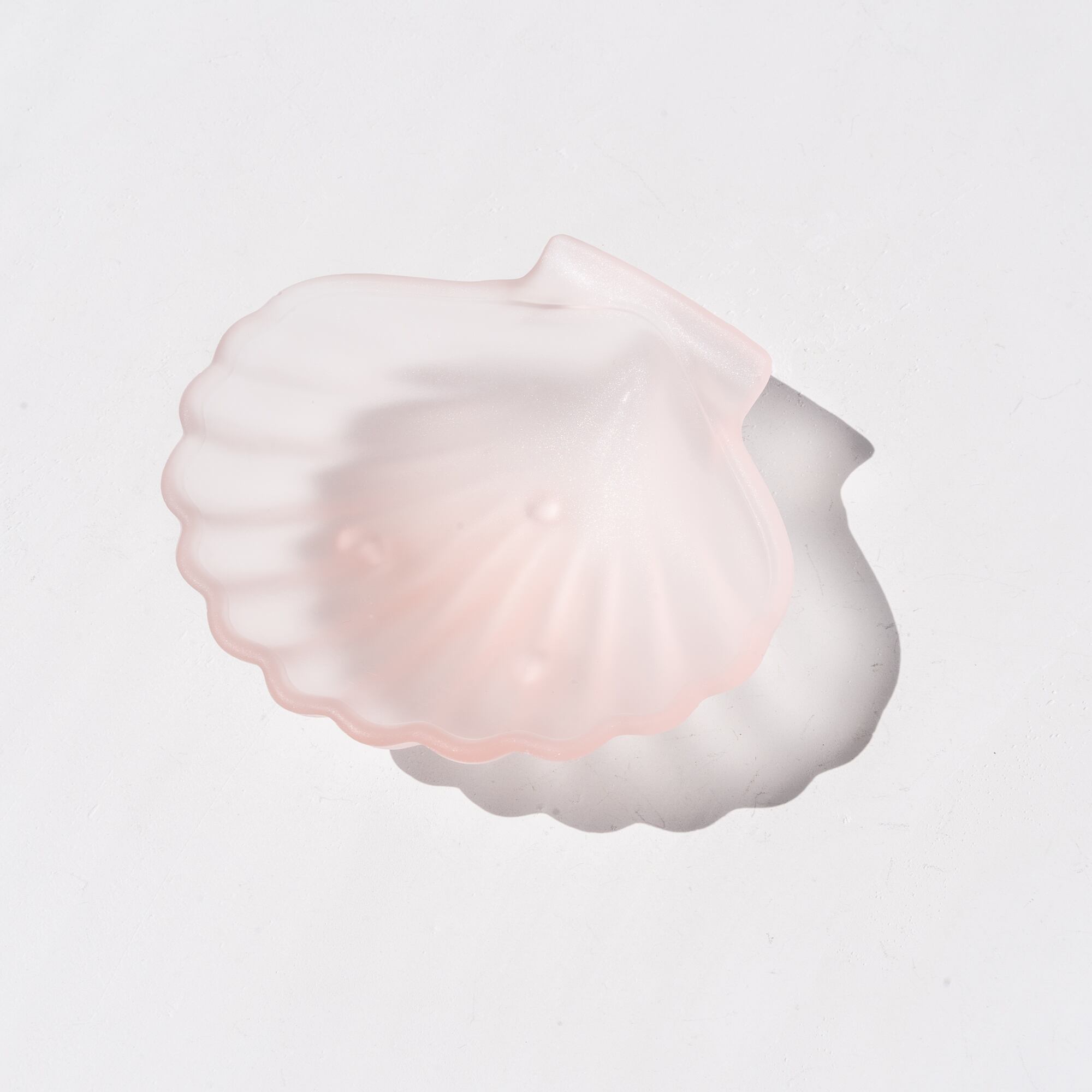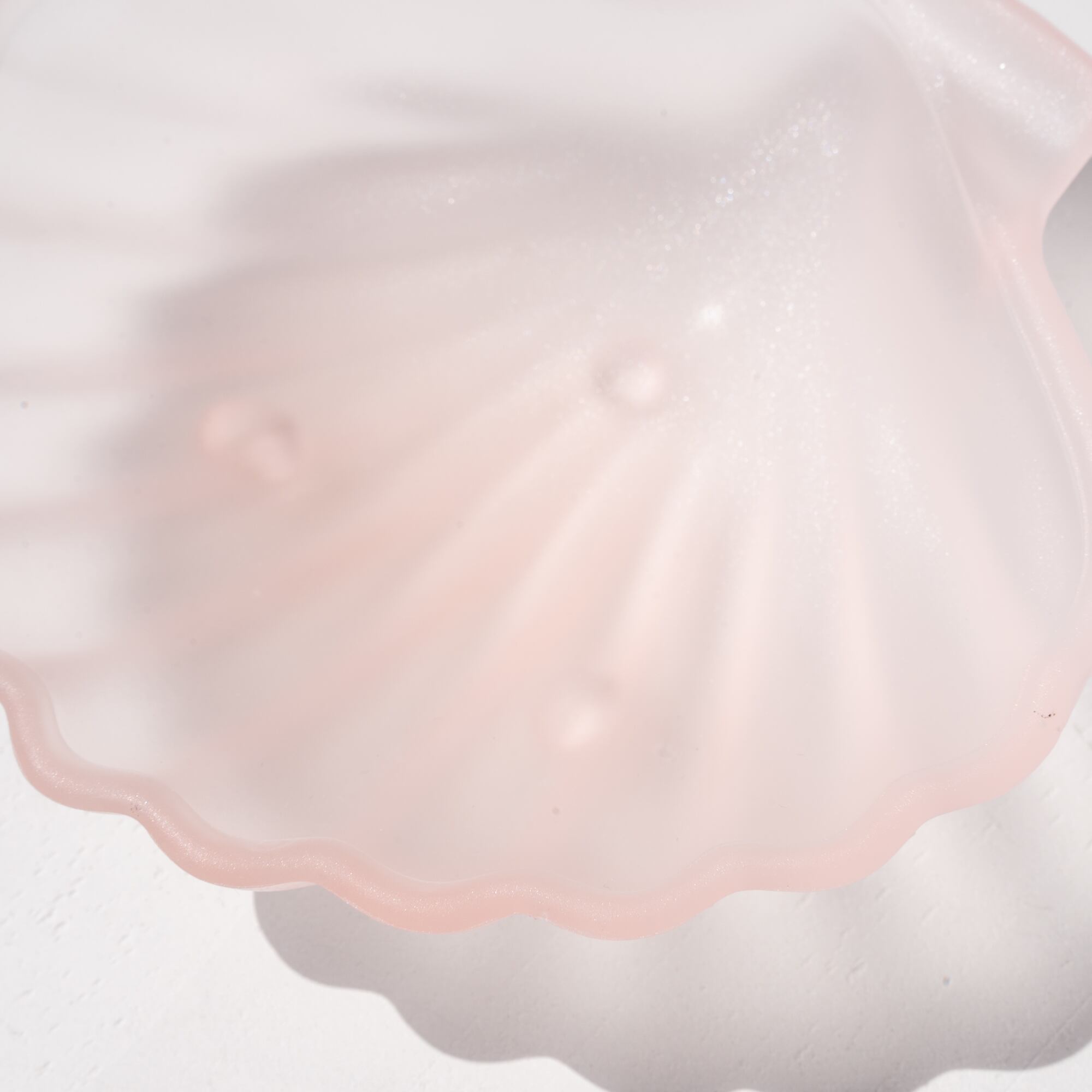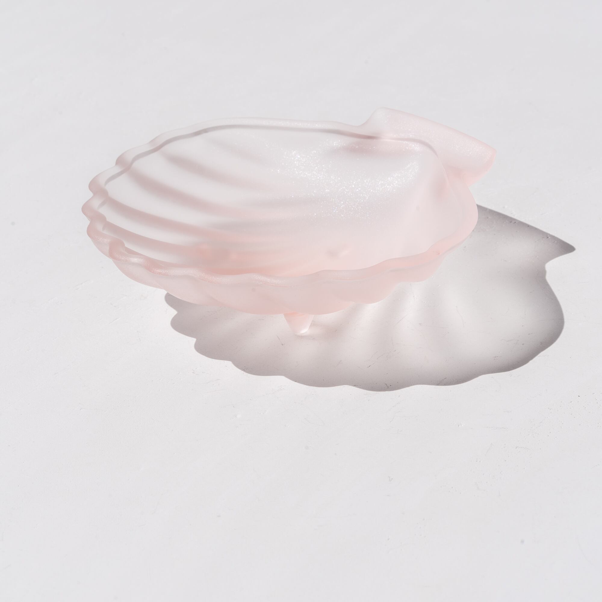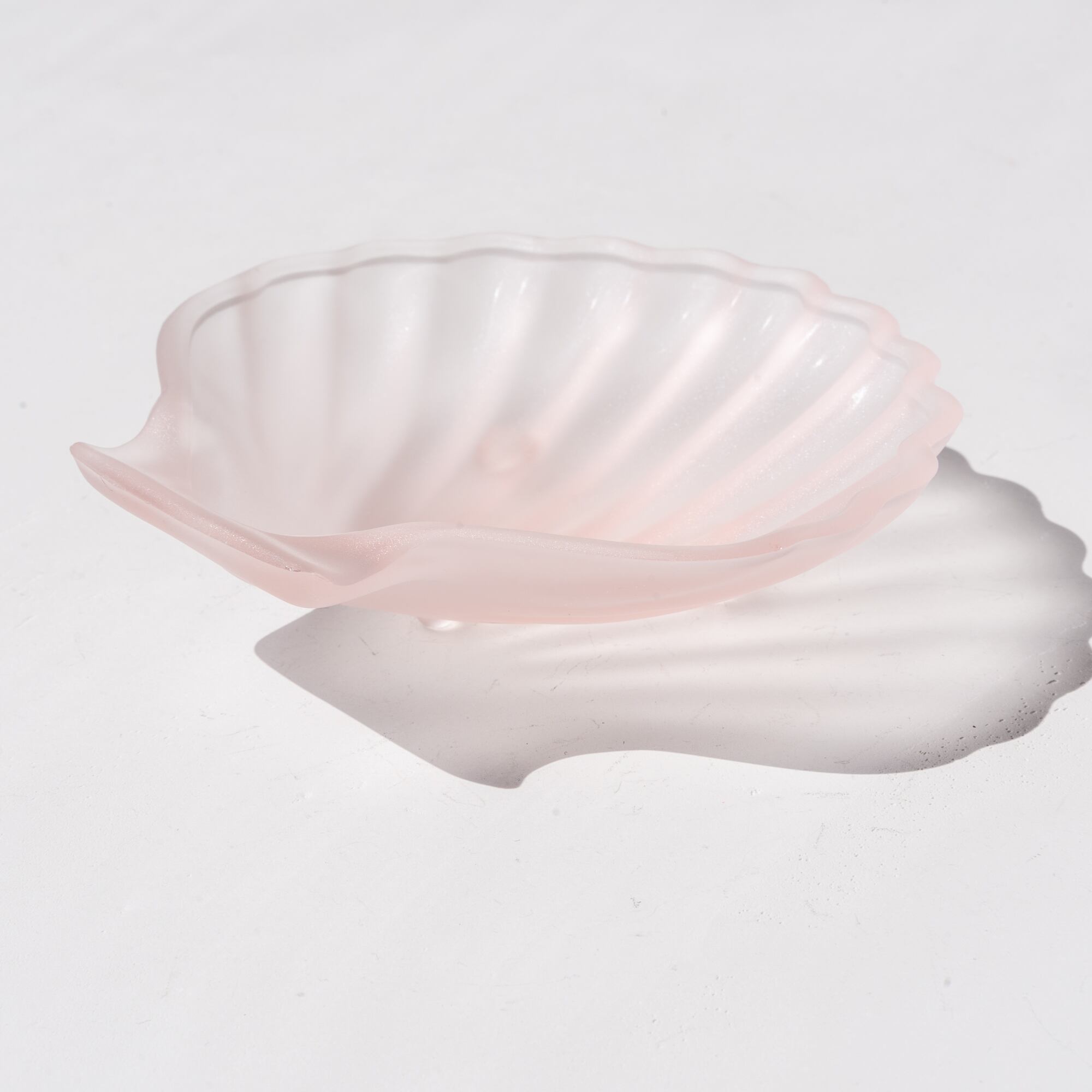 マットな質感のガラスでつくられた貝殻の形をしたトレイ。