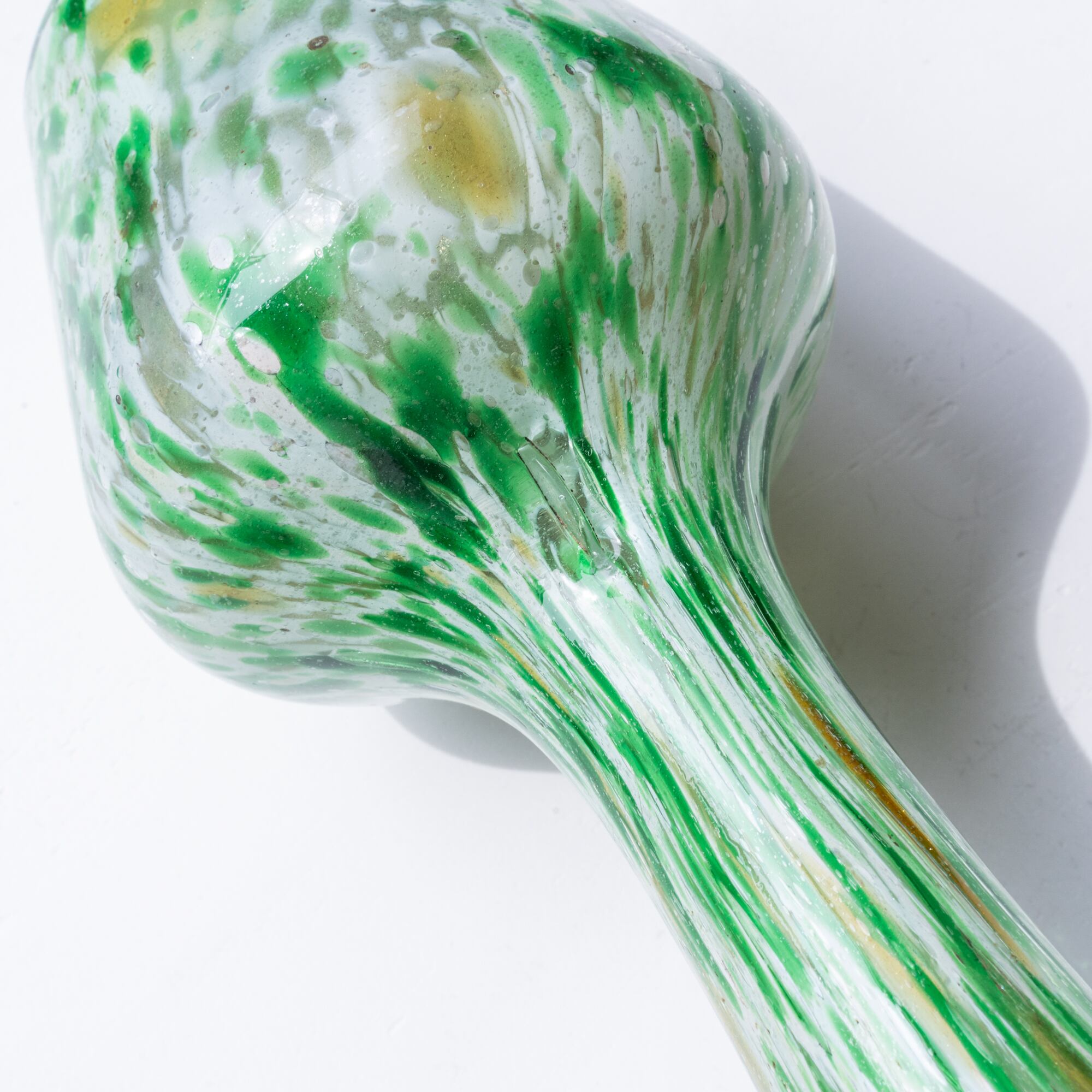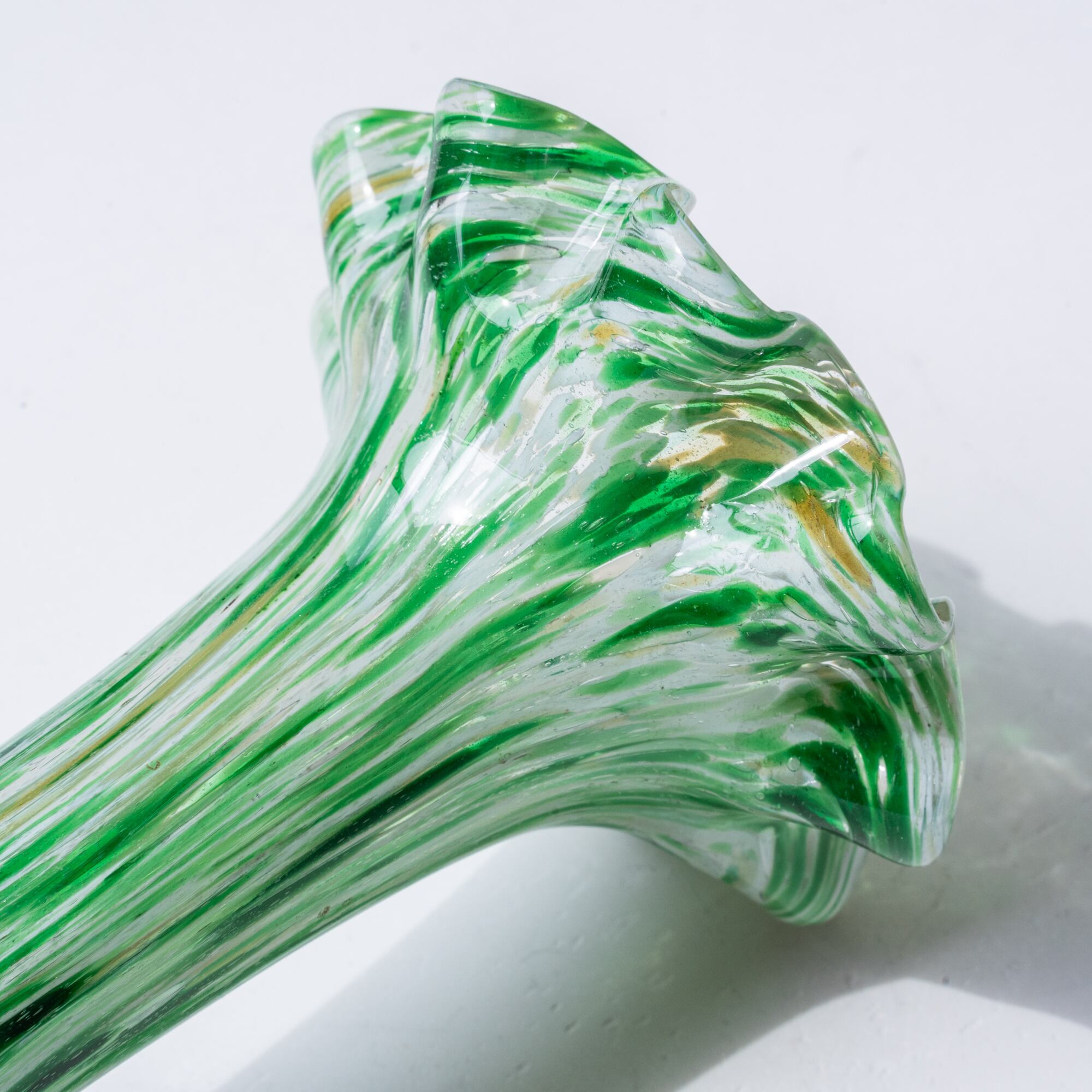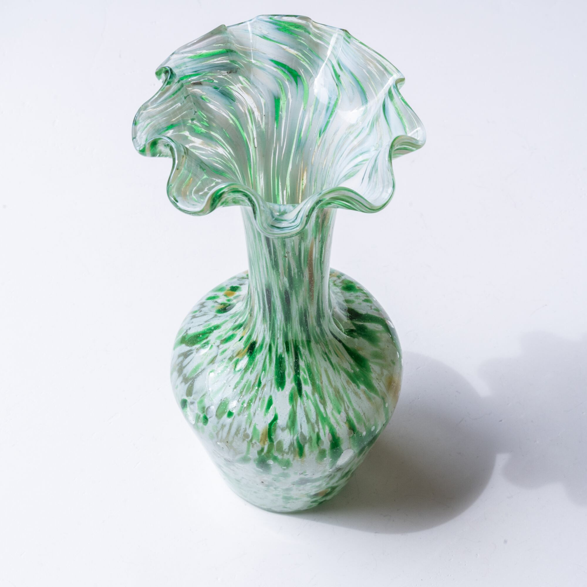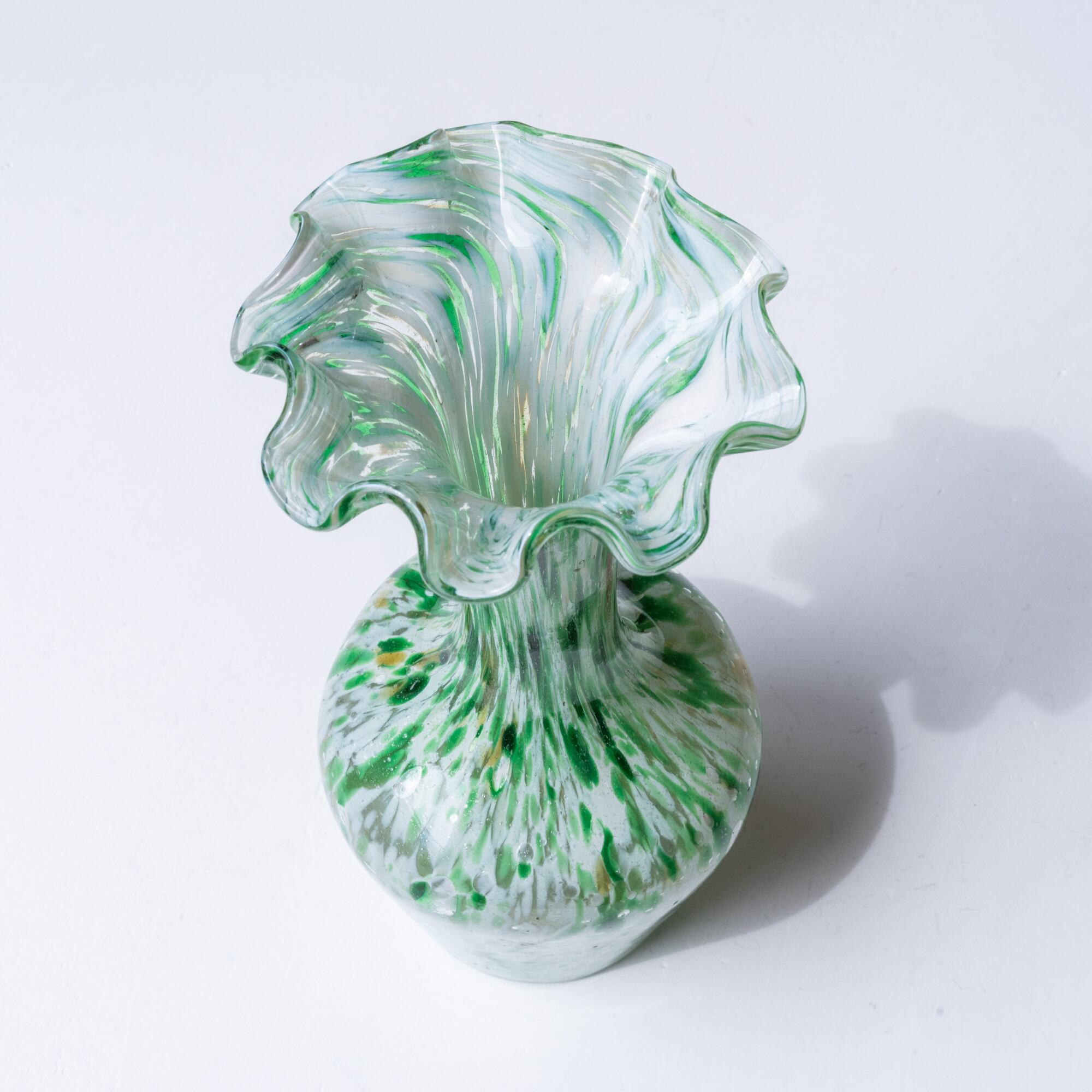 花開いたような大ぶりのフリルのデザイン、グリーン、ホワイト、イエローのマーブル模様がとても魅力的。