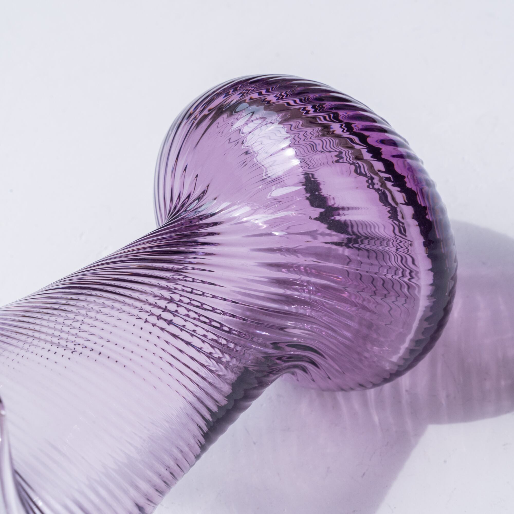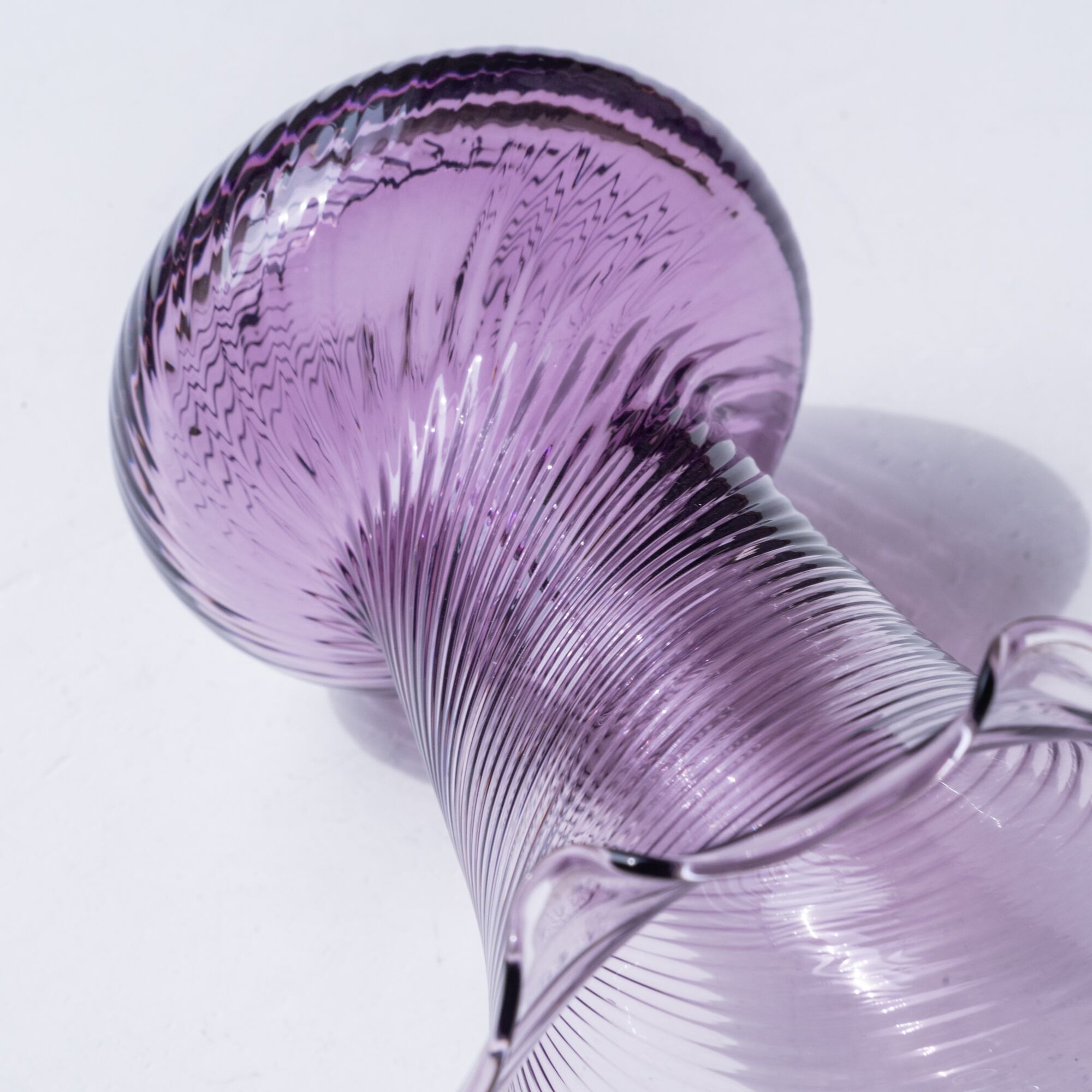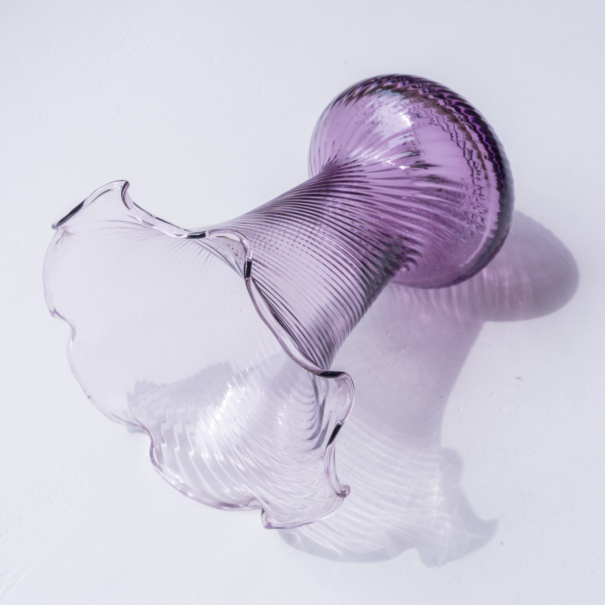 アメジストカラーのクリアガラスが美しく、大きく花開いたような大ぶりのフリルのデザインも魅力的。