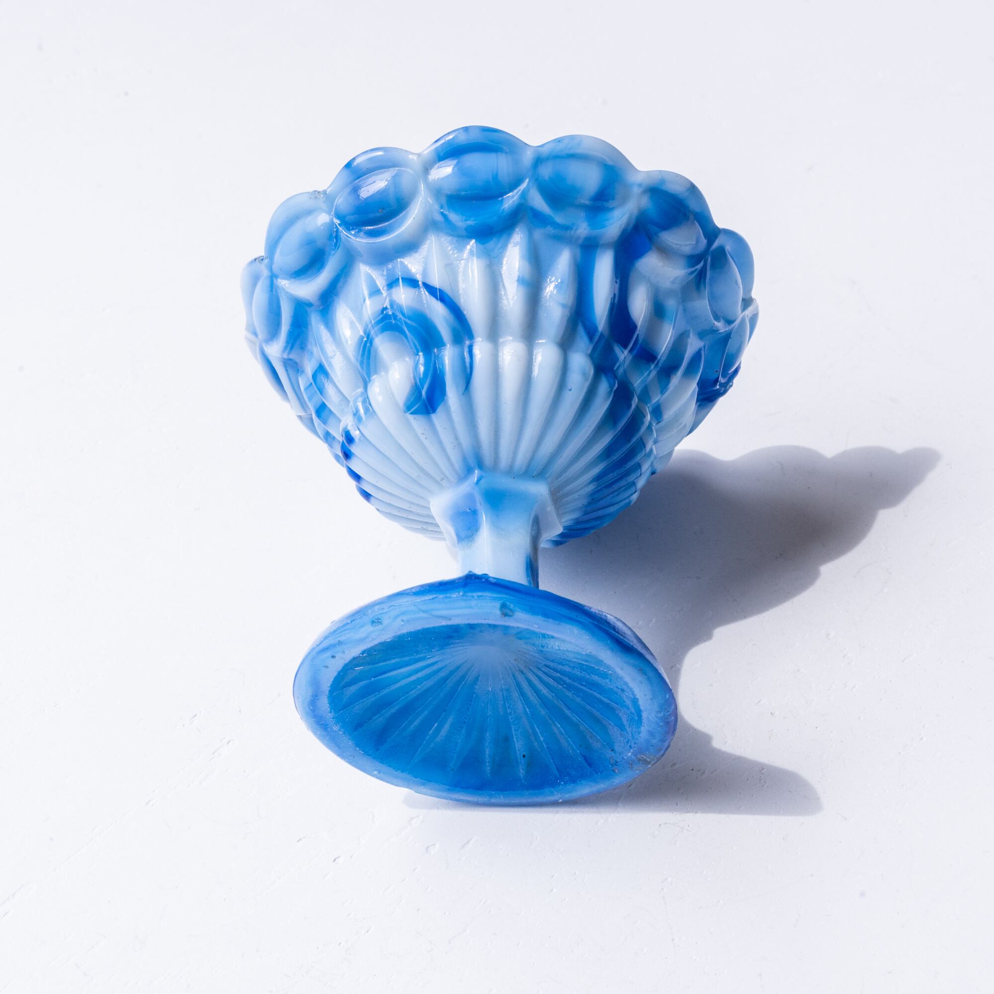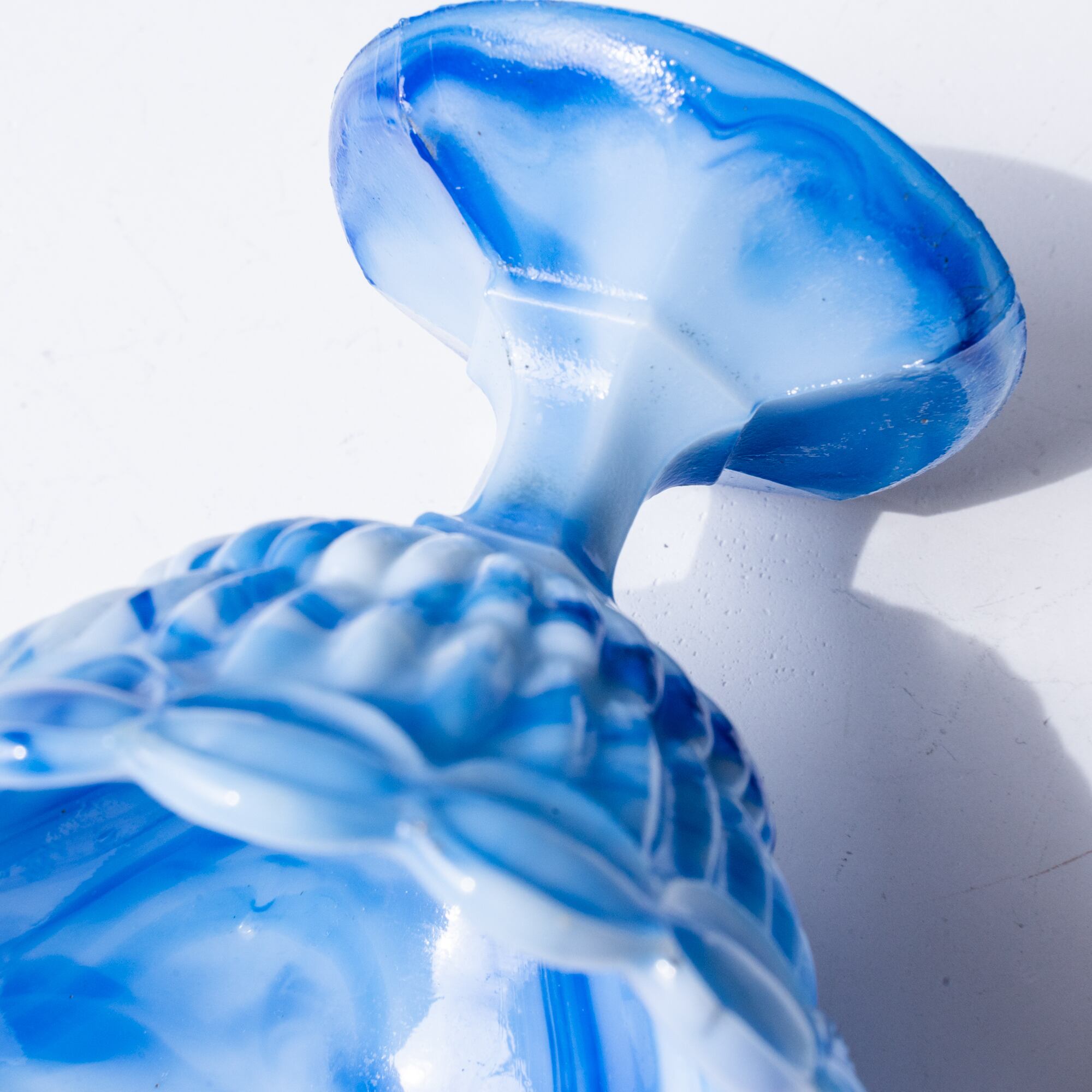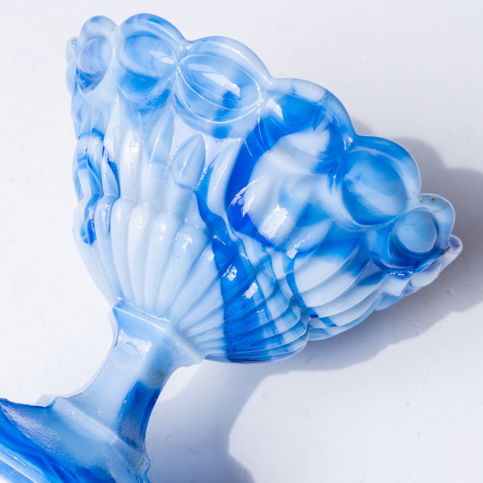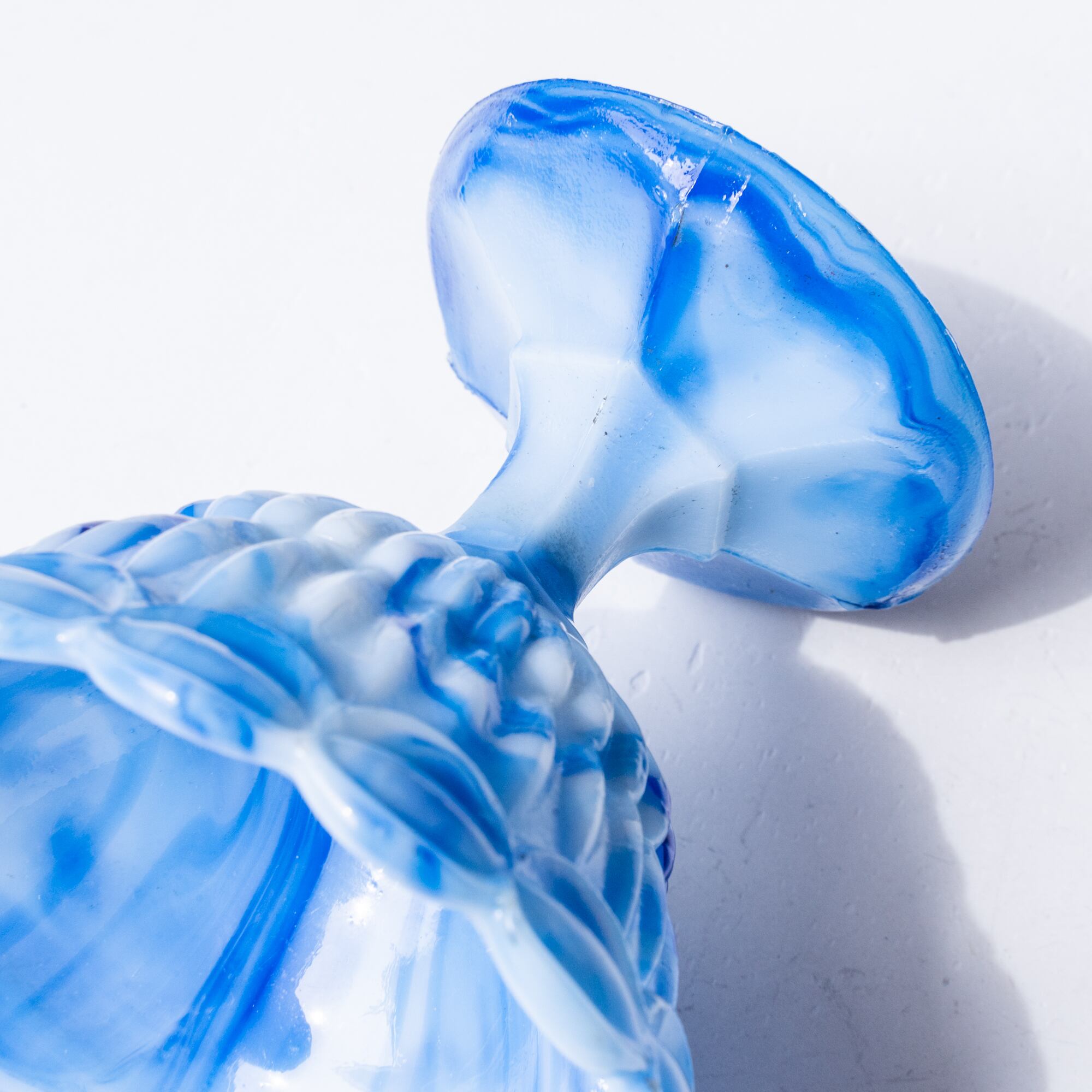 快晴に流れる雲を描いたような、ブルーとホワイトのマーブル模様、グラデーション美しい花器。