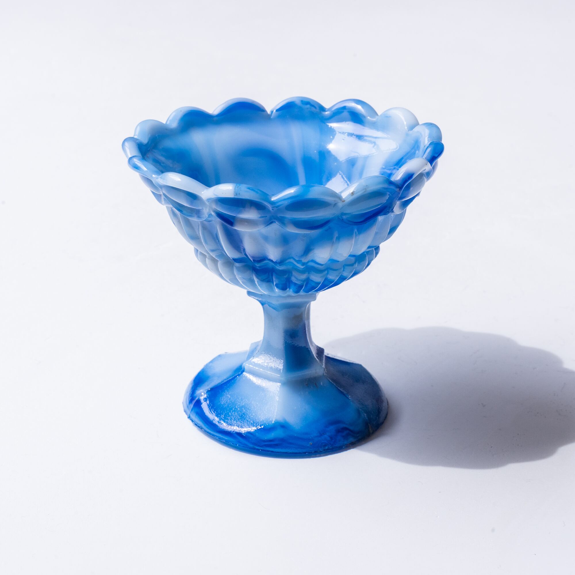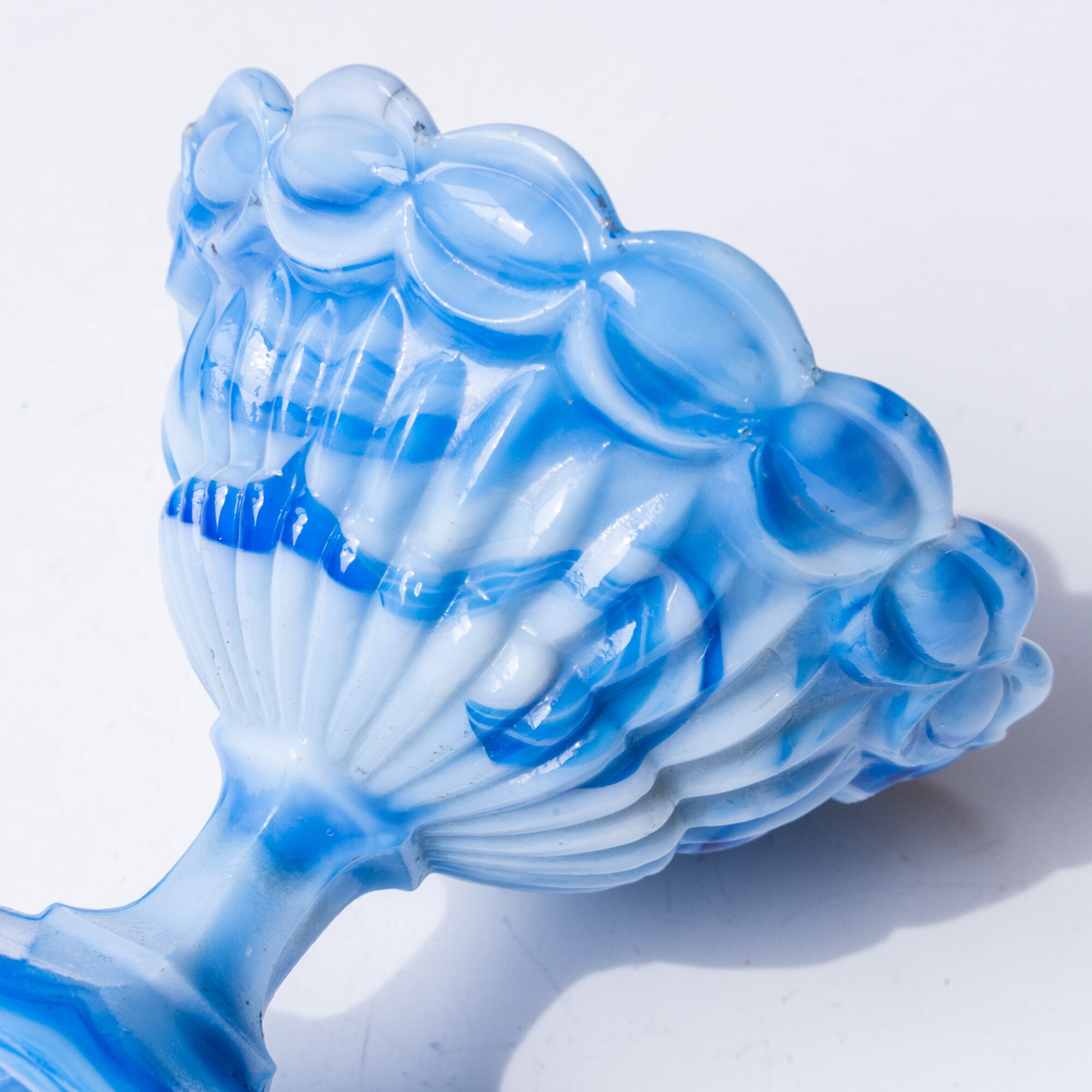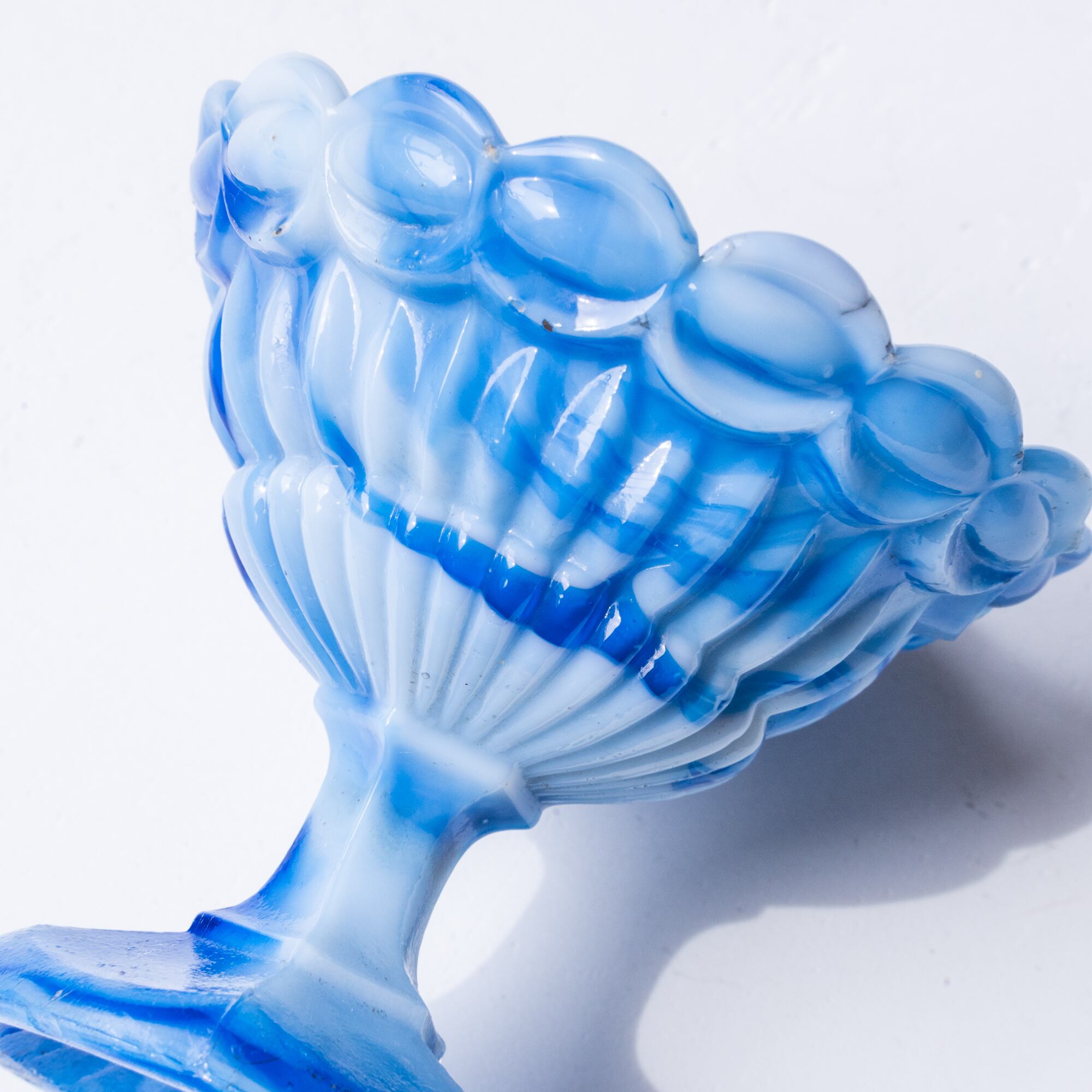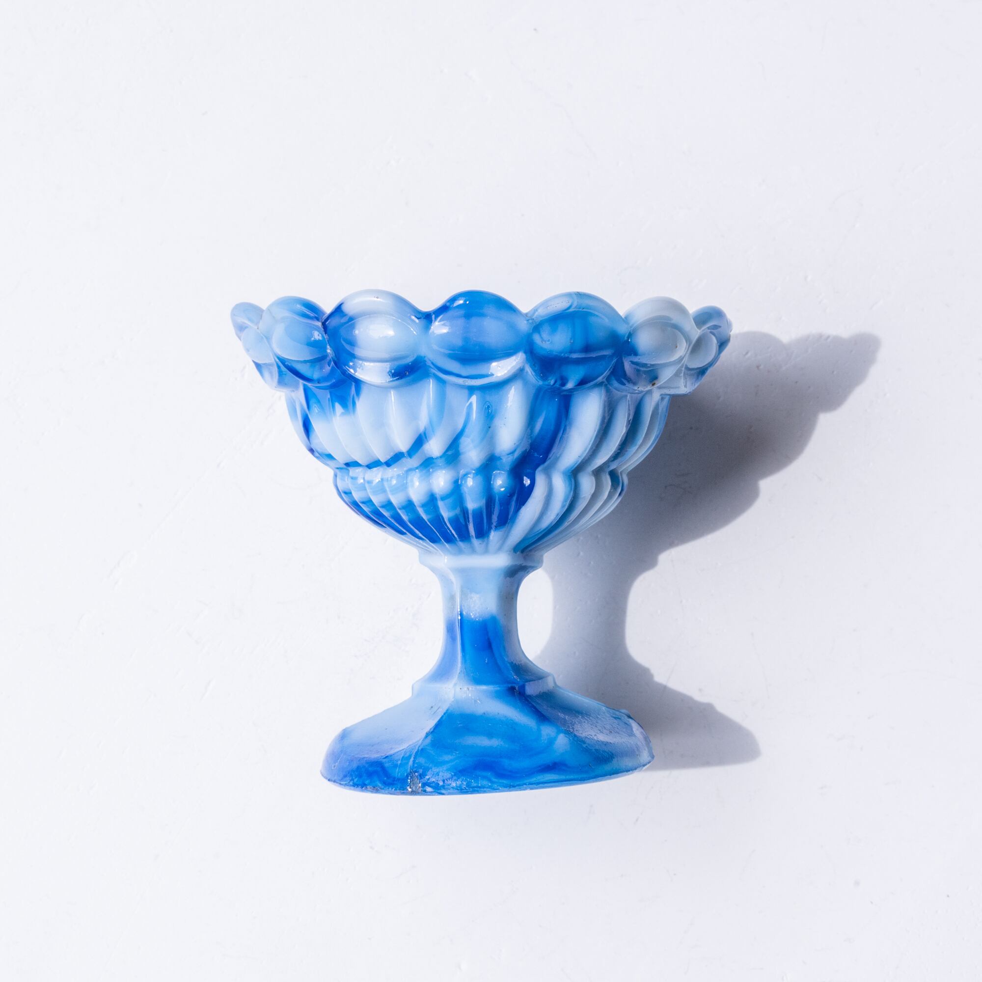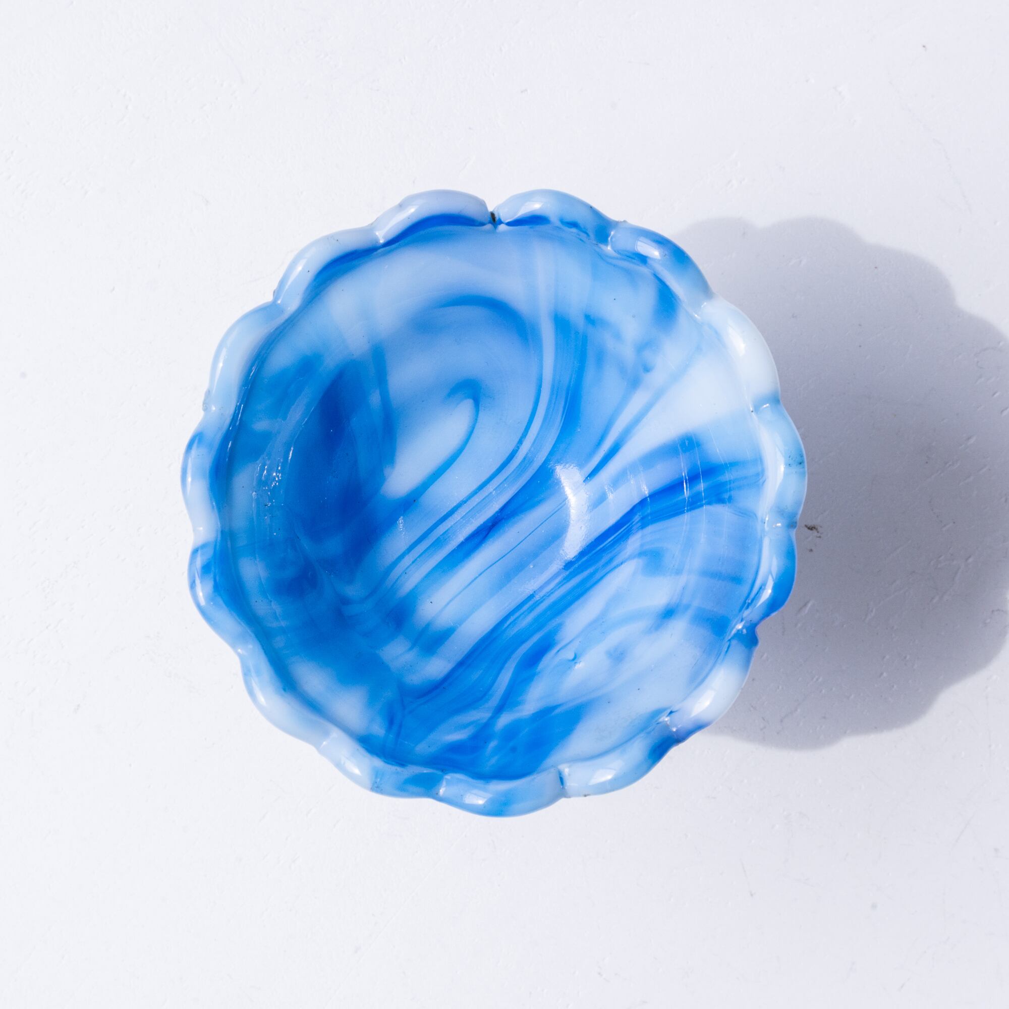 快晴に流れる雲を描いたような、ブルーとホワイトのマーブル模様、グラデーション美しい花器。