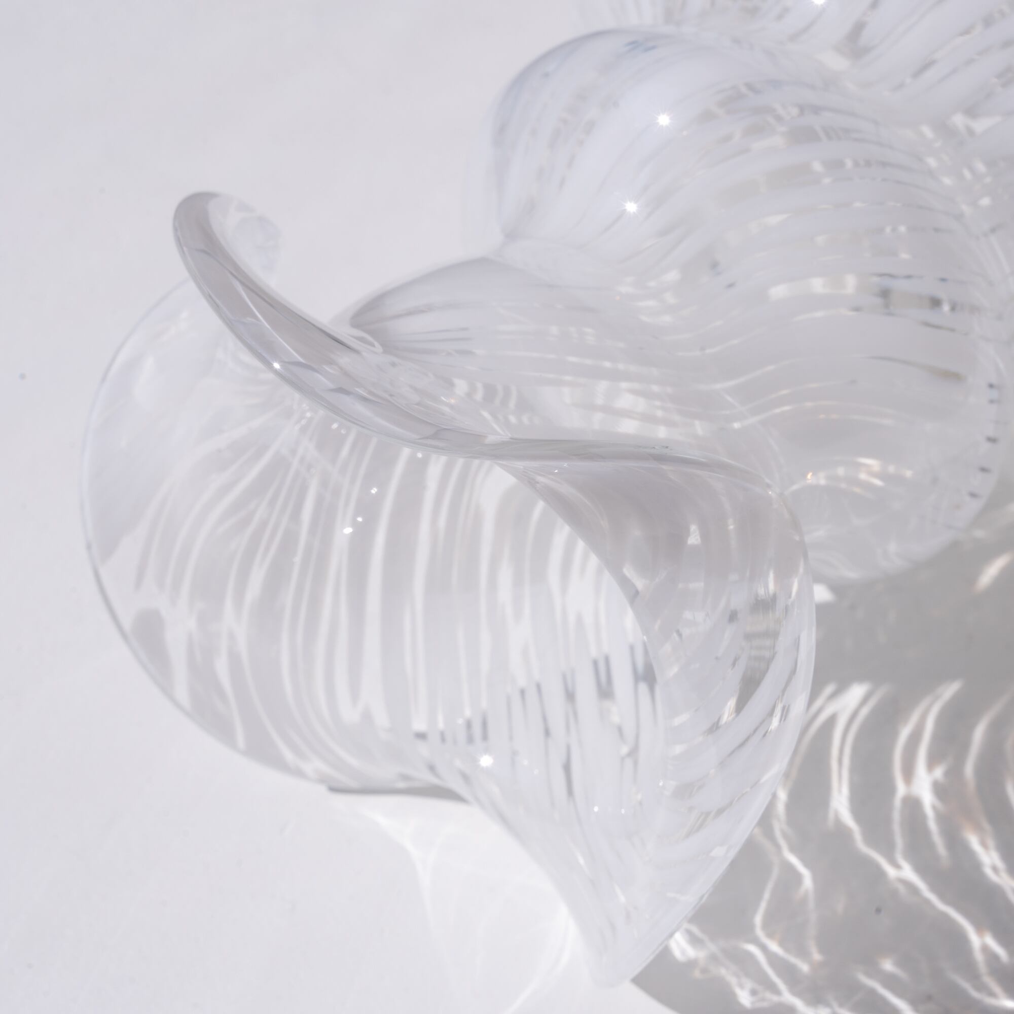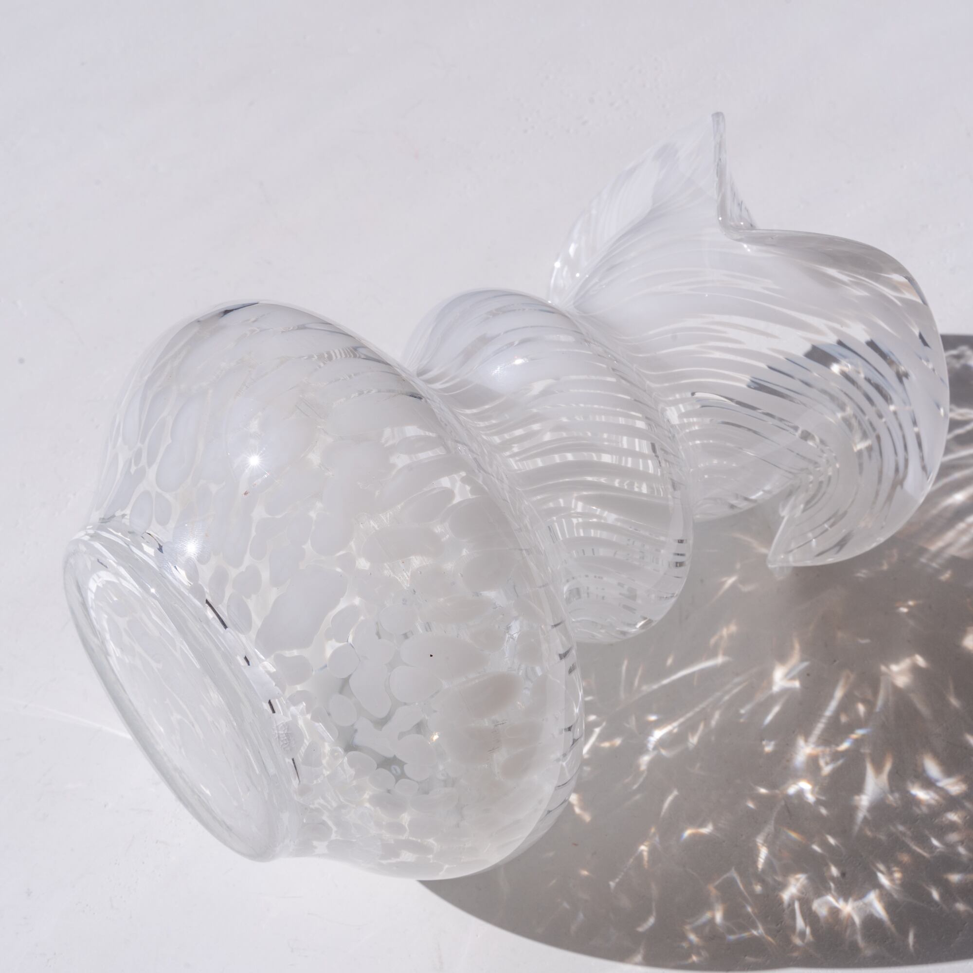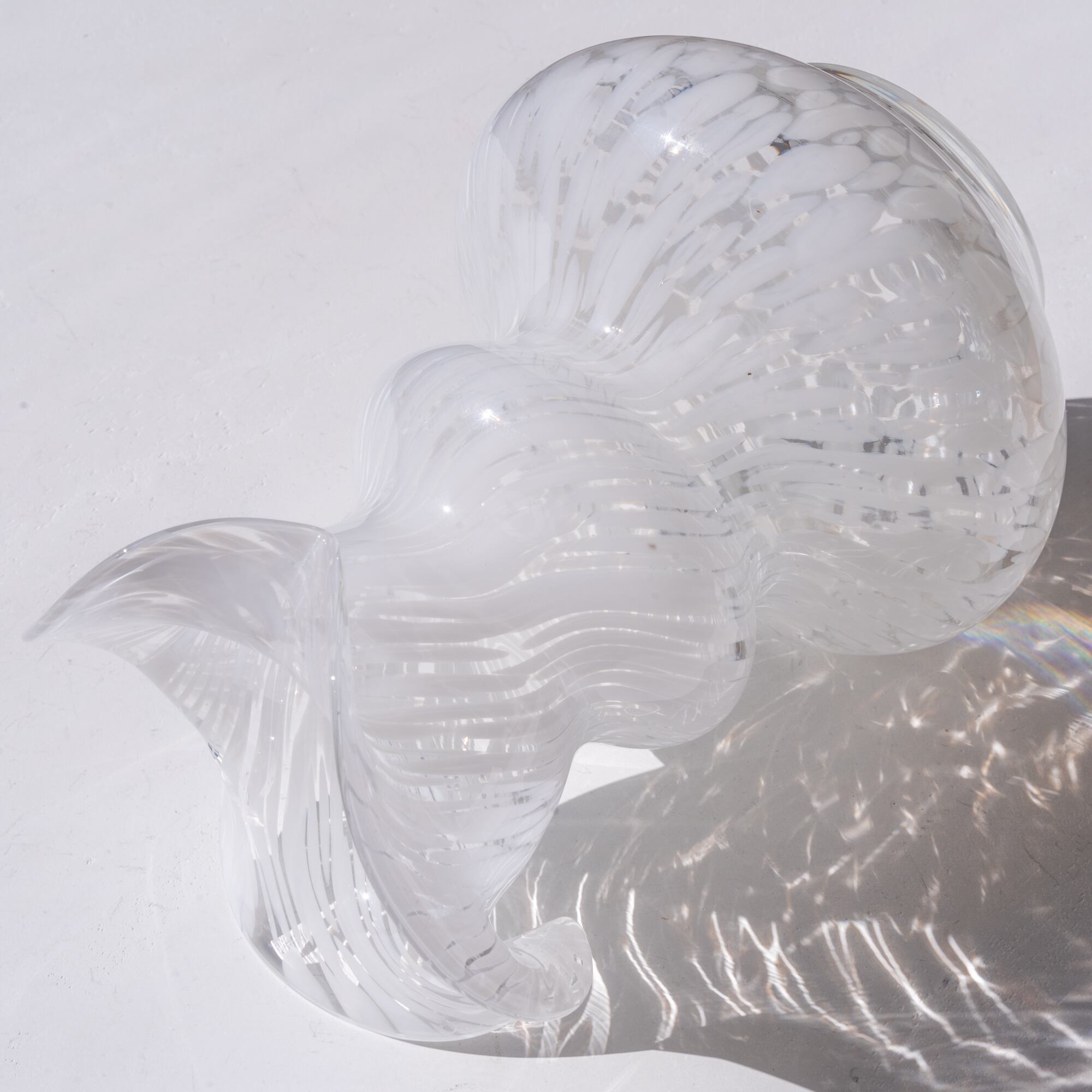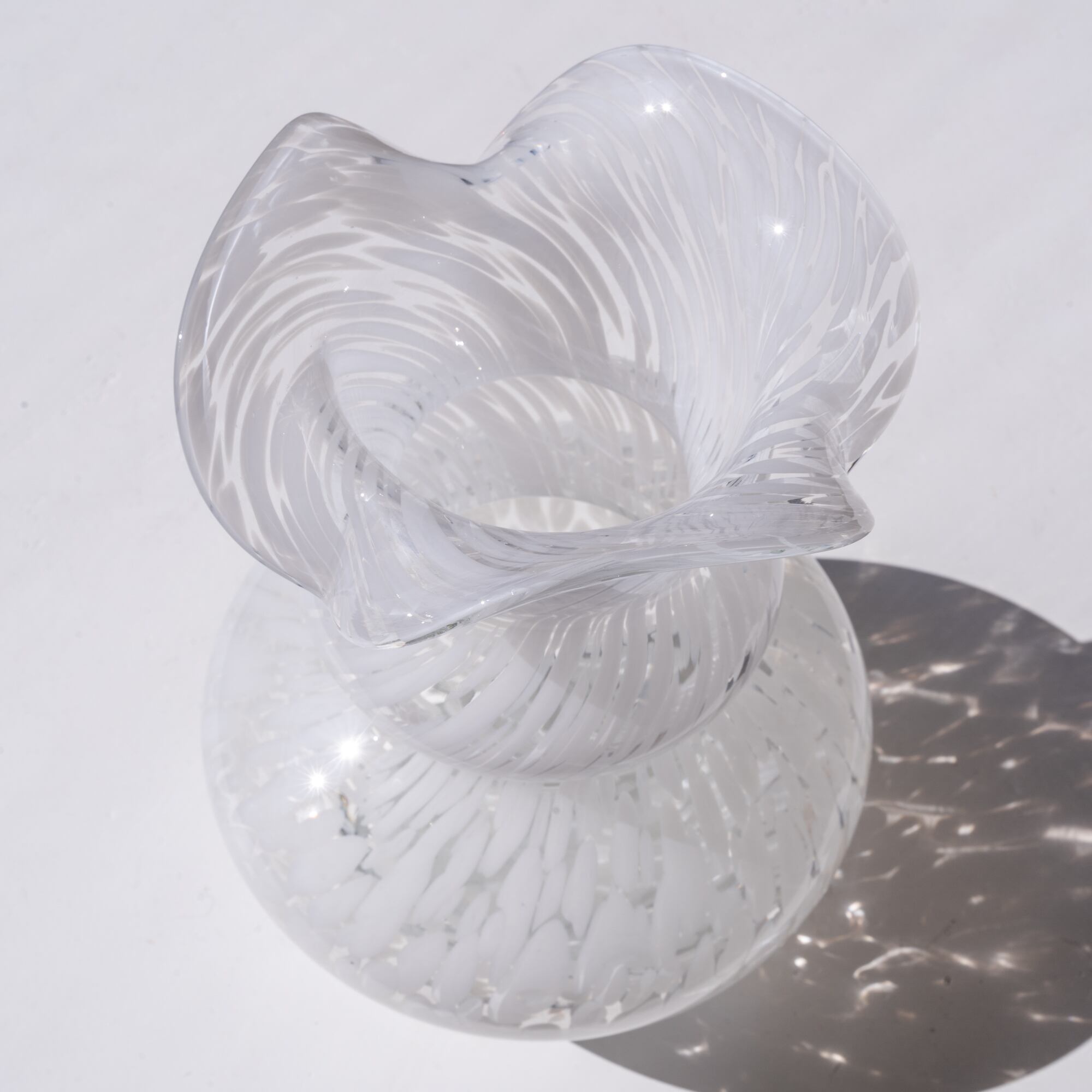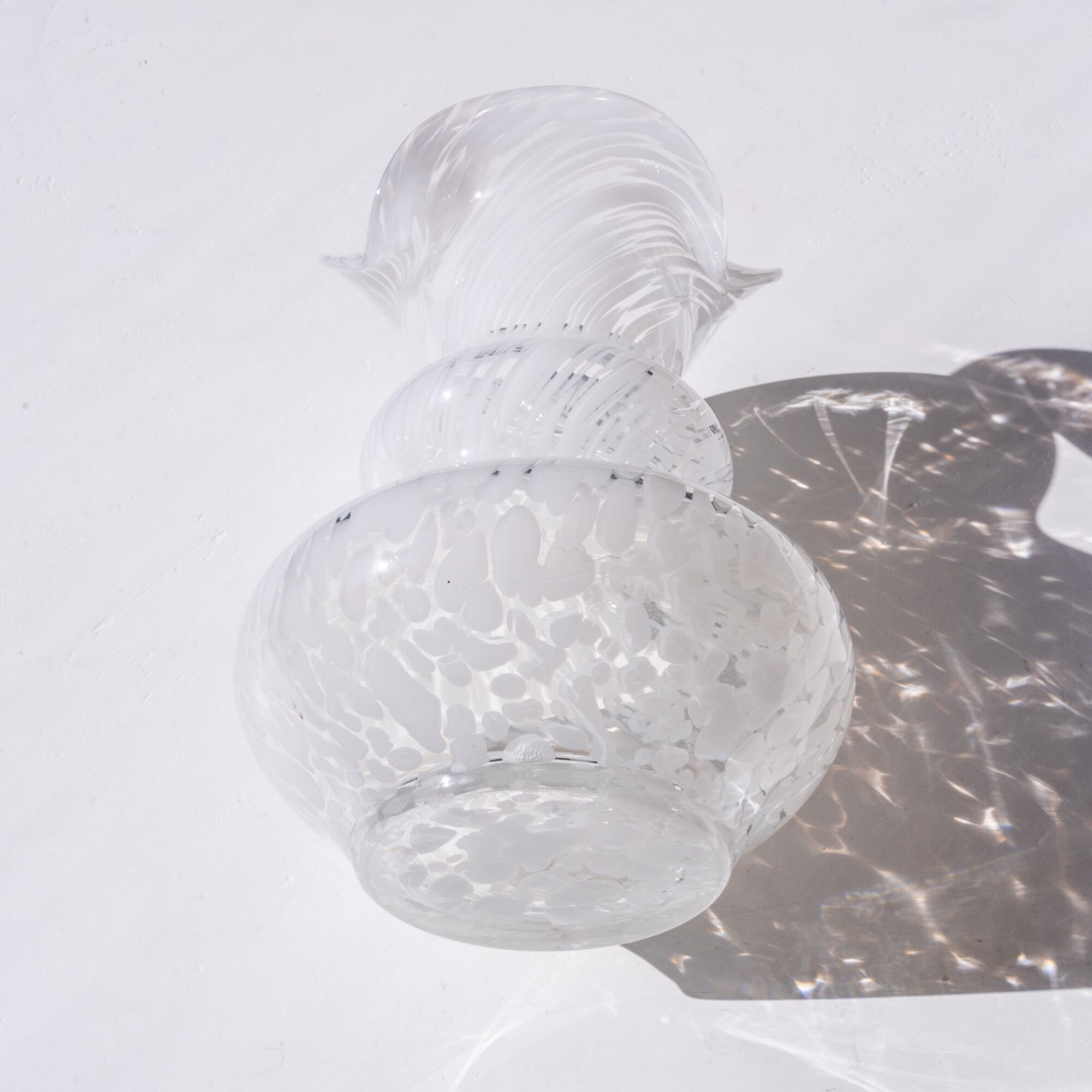 クリアなガラスに、ホワイトのマーブル模様が広がる美しいデザイン。