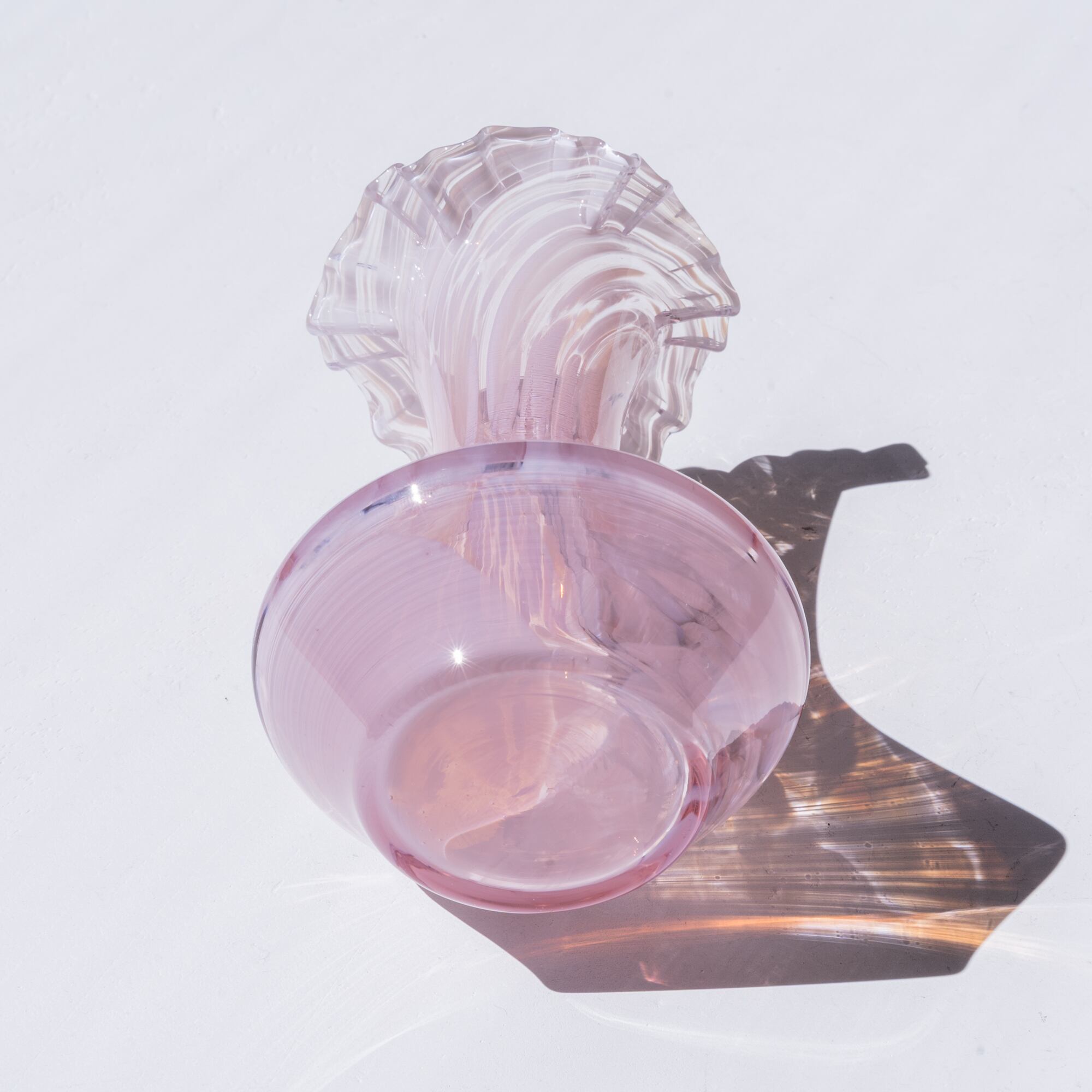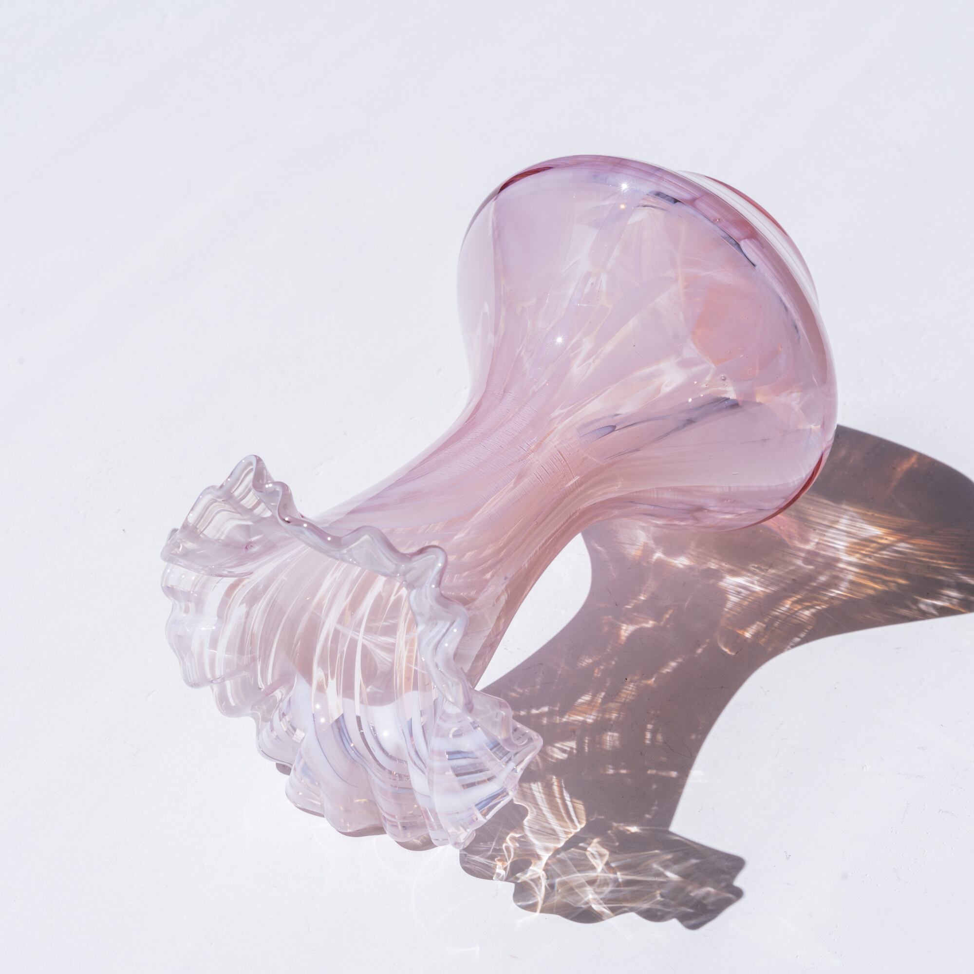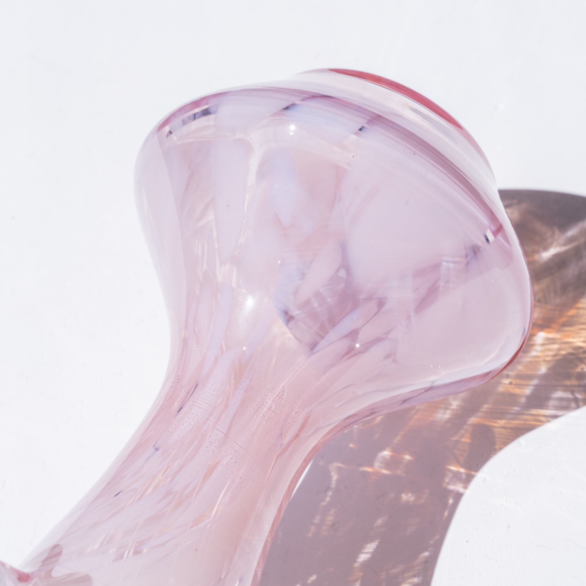 ピンクがかったクリアなガラスに、ホワイトのマーブル模様が広がる美しいデザイン。