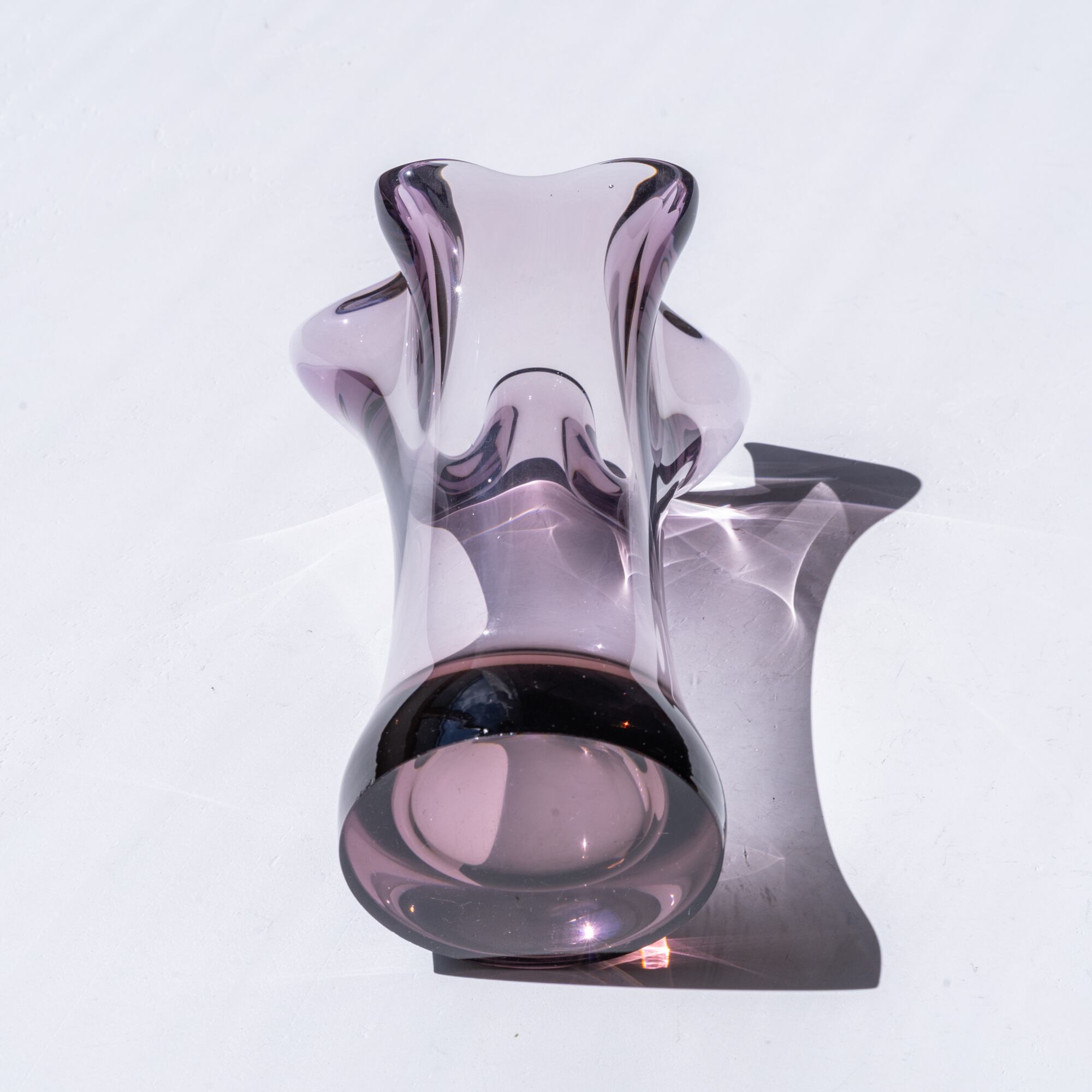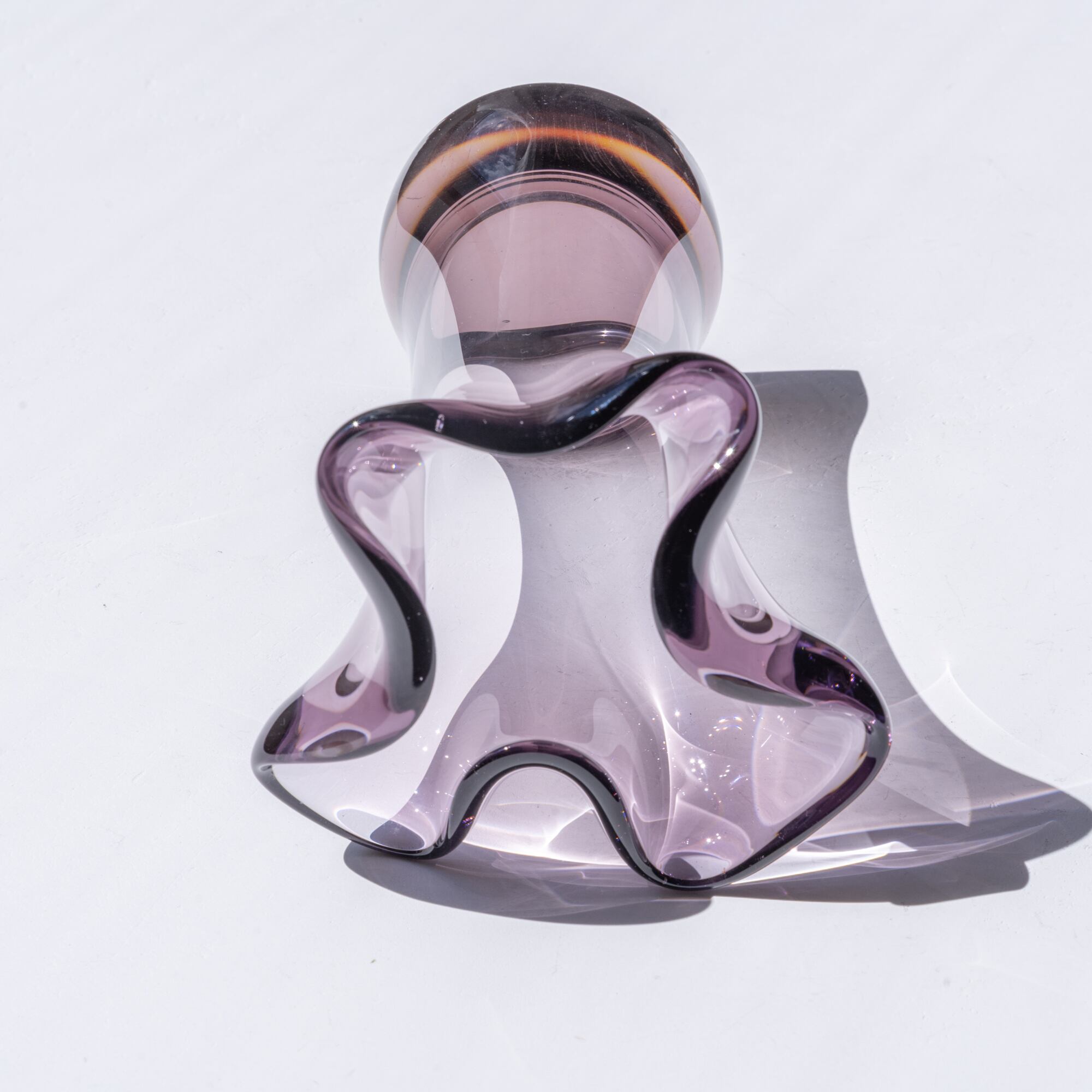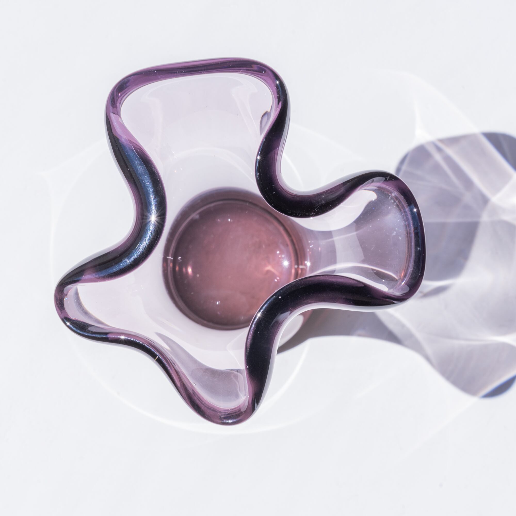 ぽってりとしたクリアガラスにほんのり色づいたプラムカラー。