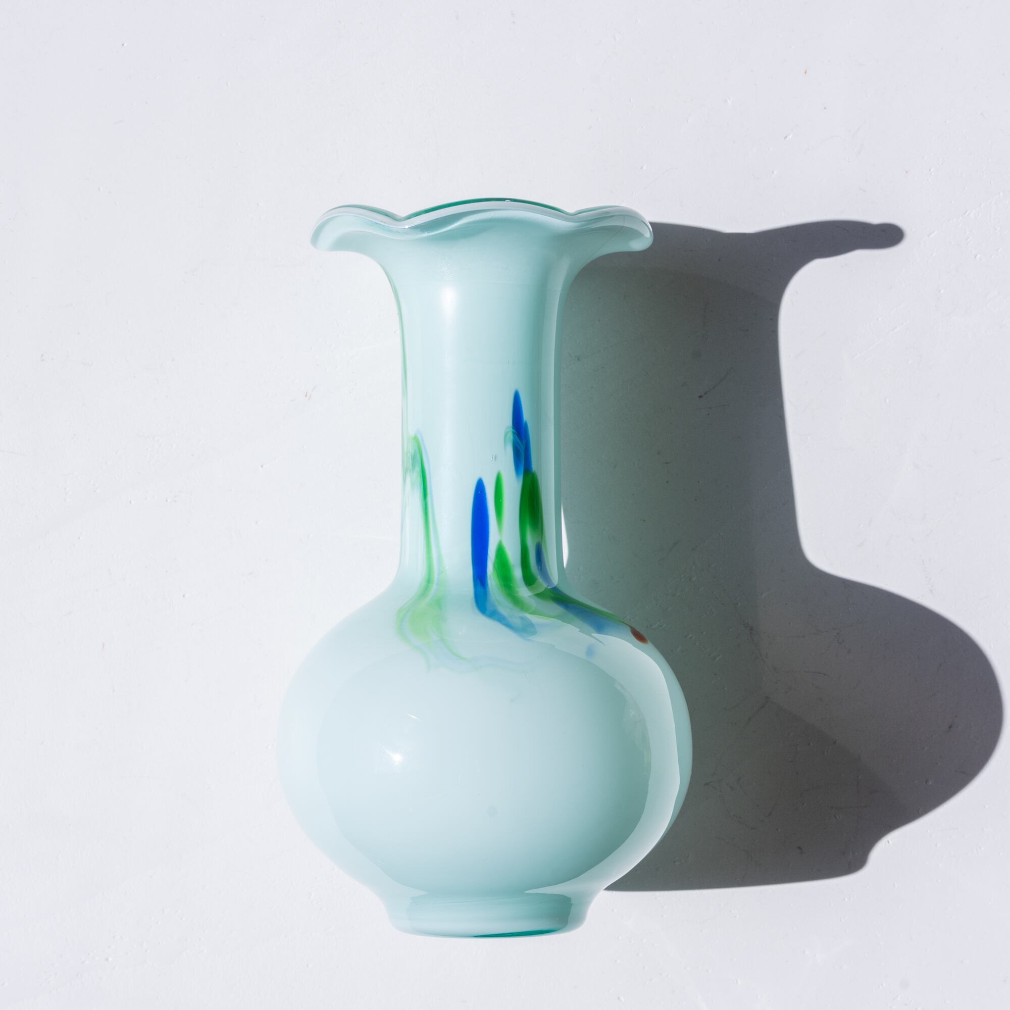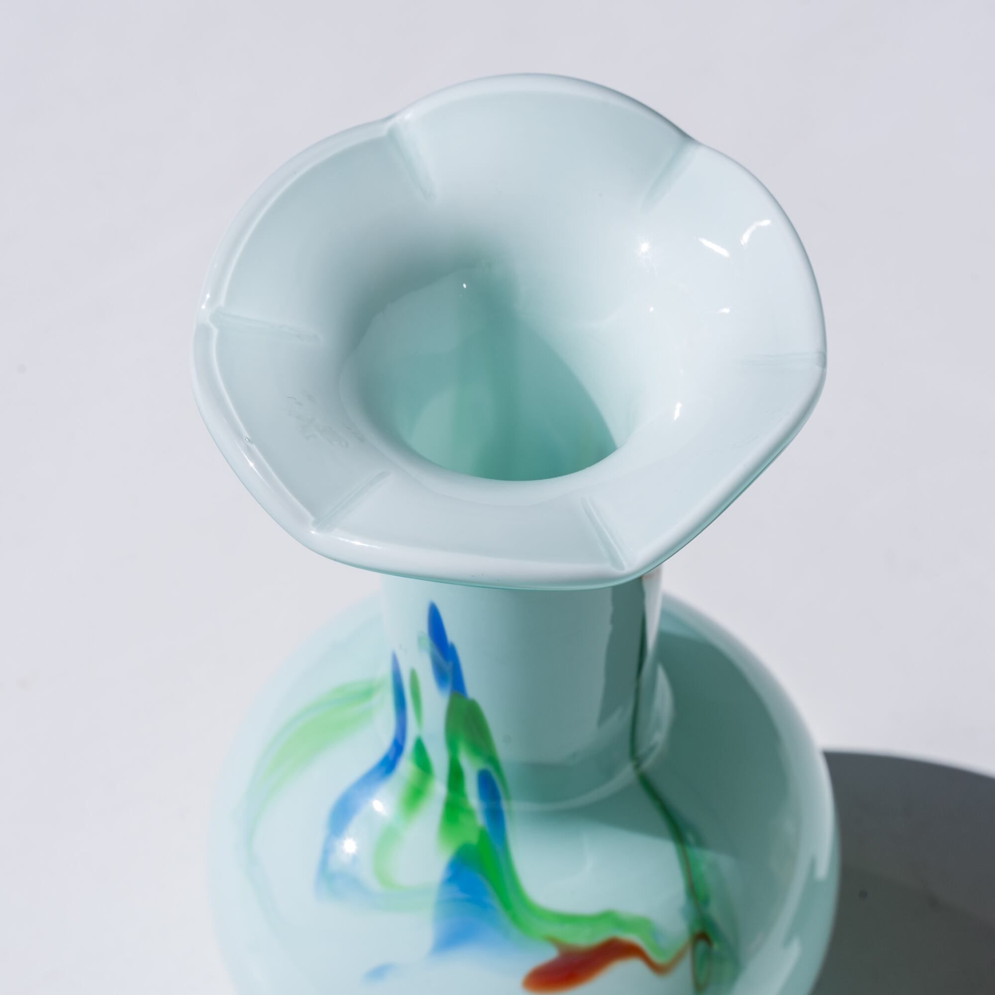 流れるように描かれた水彩模様は、ブルー・グリーン・レッド・イエローなど、様々な色に変化しながら、花器全体を彩ってくれています。