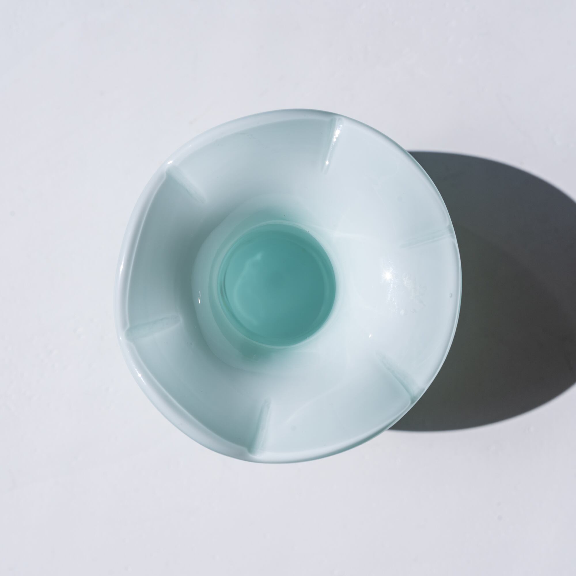 とろみのあるミルキーパウダーブルーの質感がとても魅力的なガラスアート。
