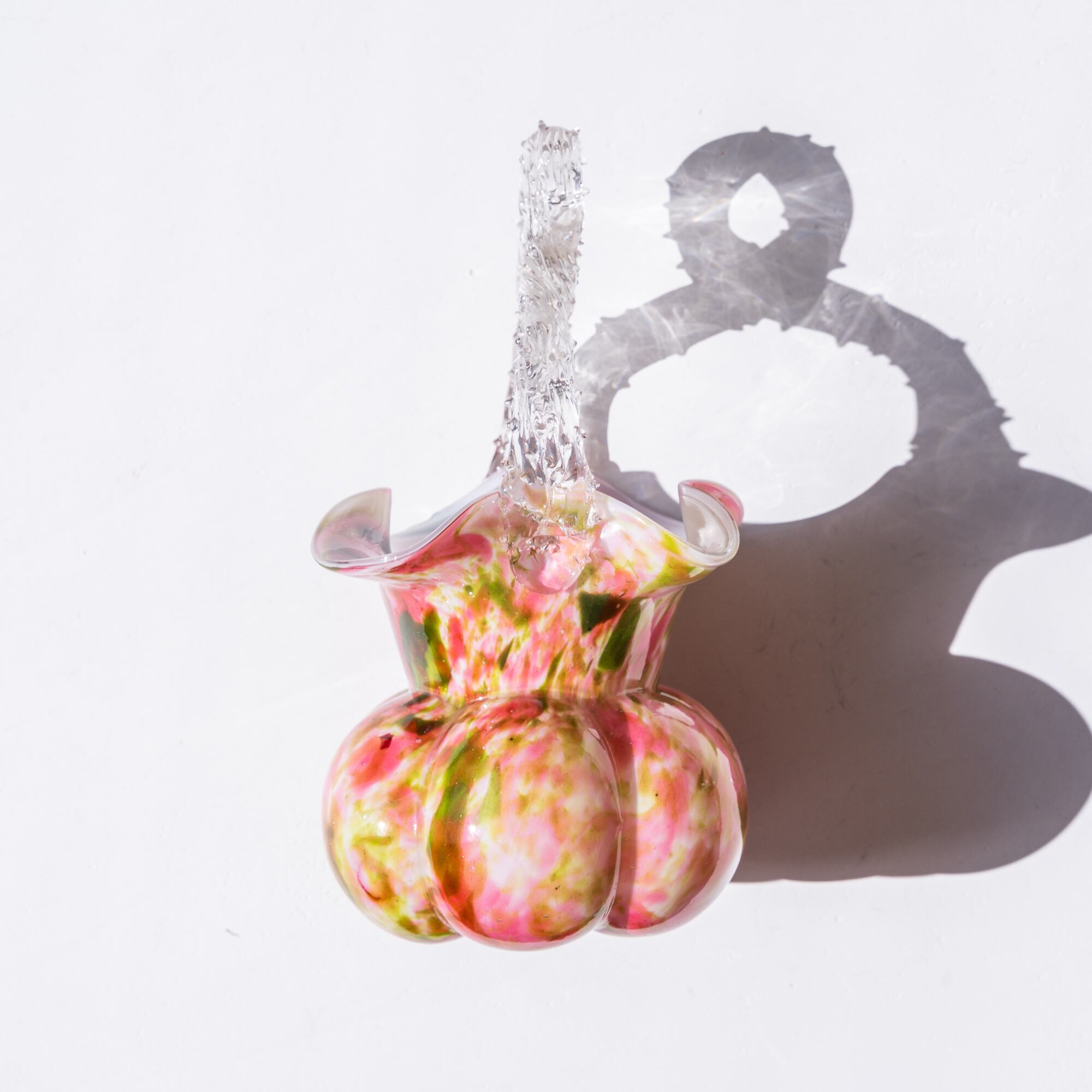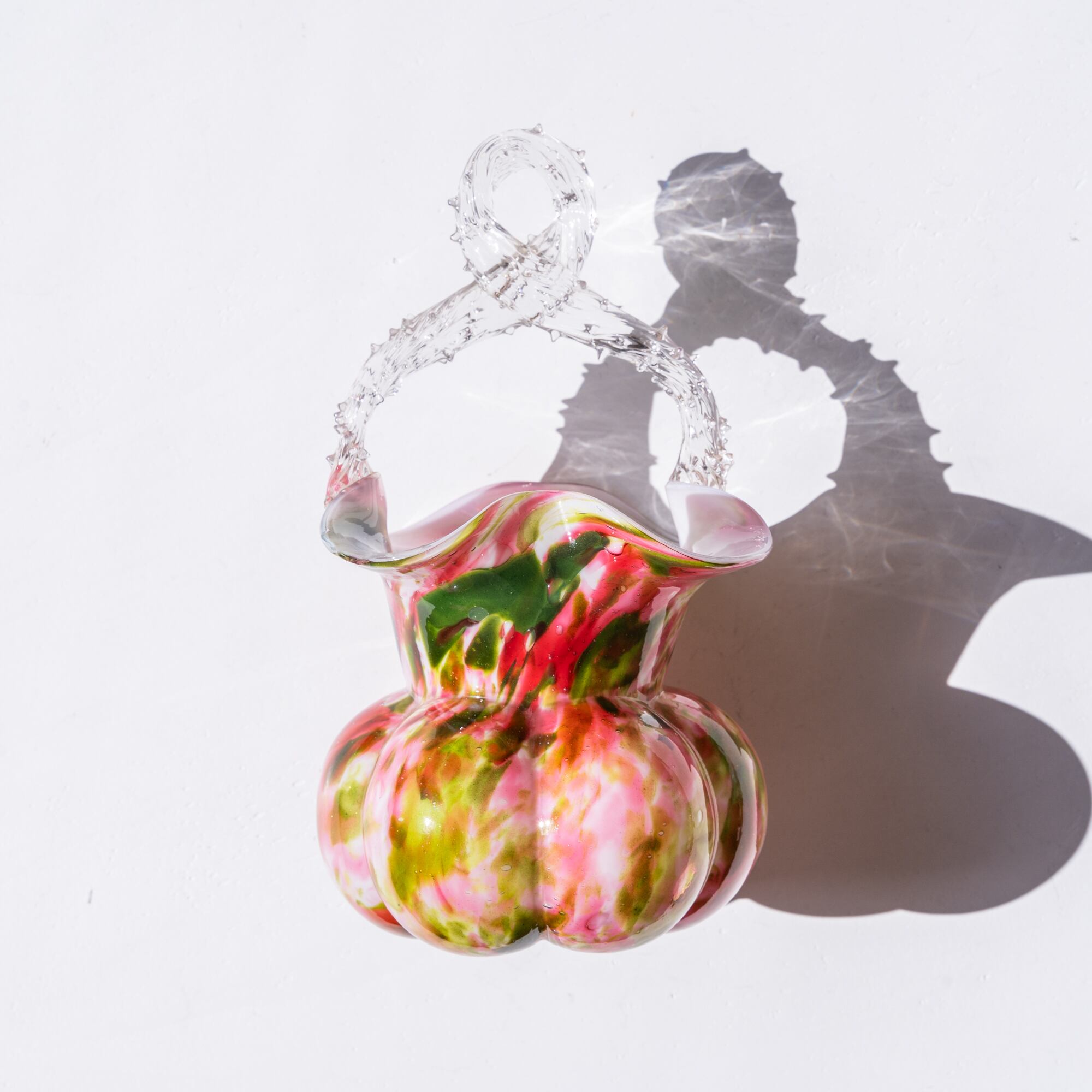 1890年代頃、チェコでつくられたボヘミアンガラスのバスケット。