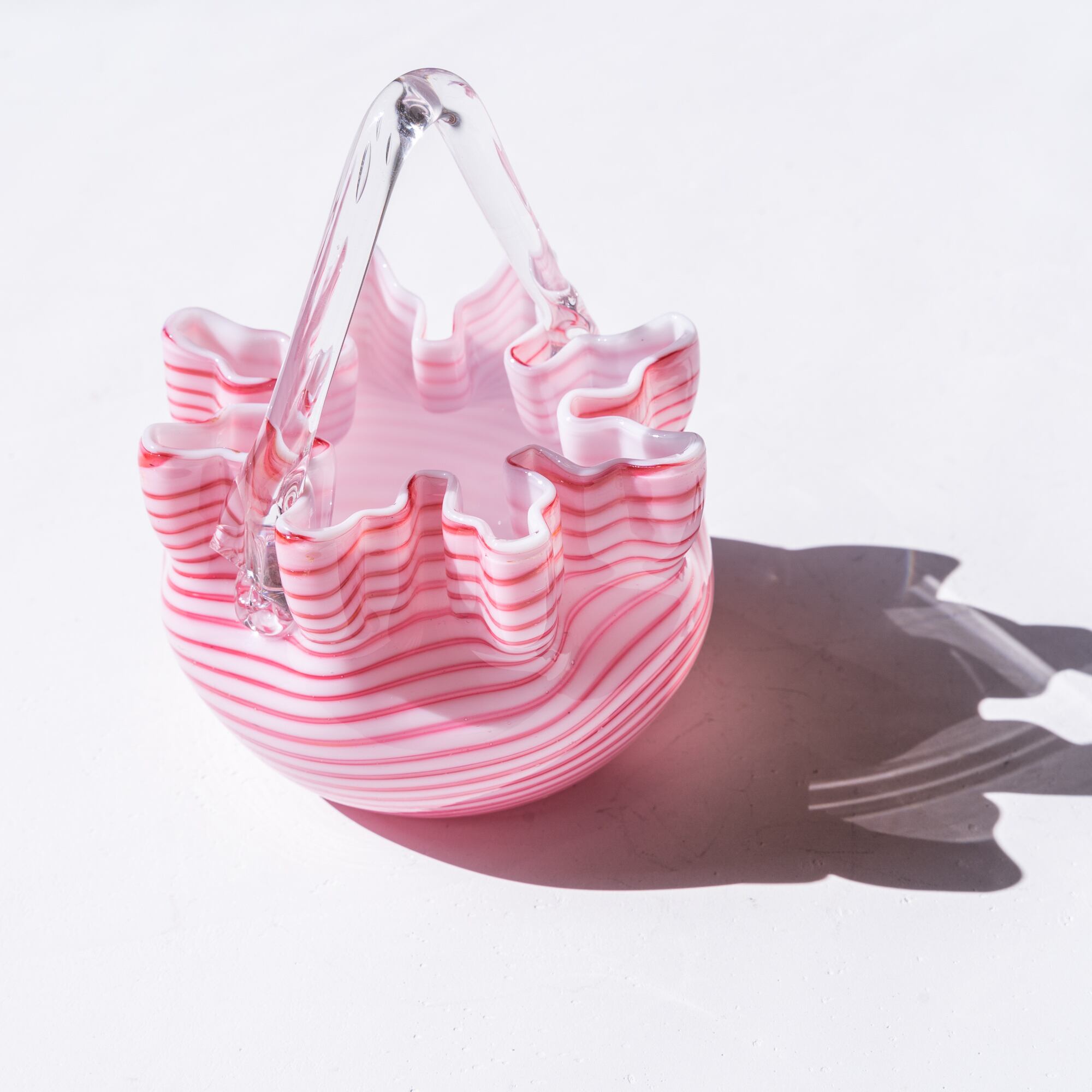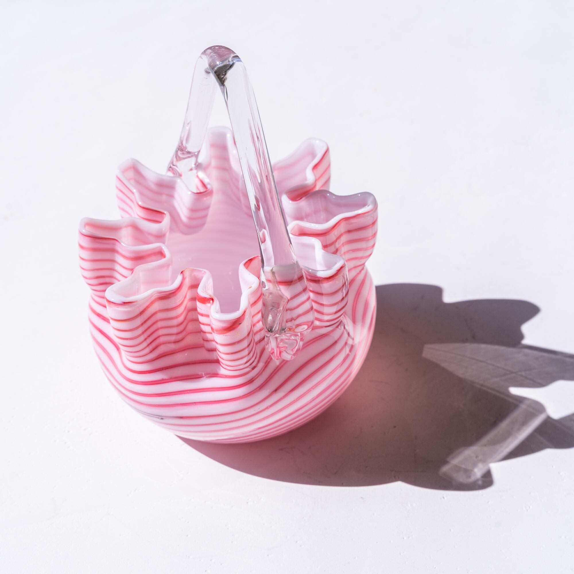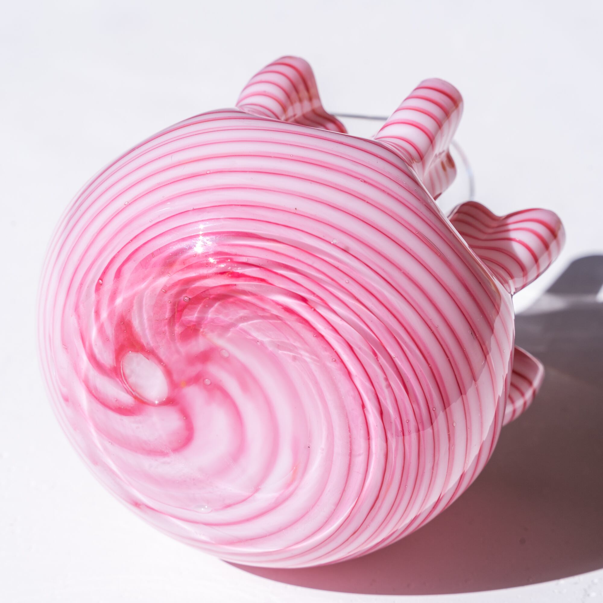 キャンディのようなピンクとホワイトのボーダーが愛嬌たっぷりのガラスアート。