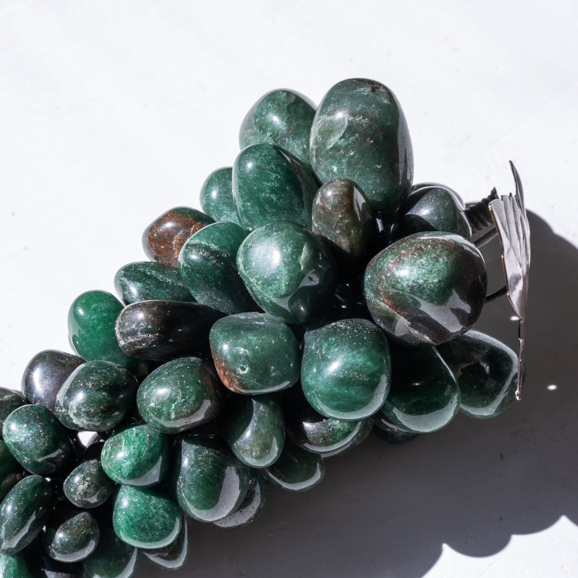 石の一つひとつが針金でつくられた房に固定されて、この素晴らしい葡萄の形を保っています。