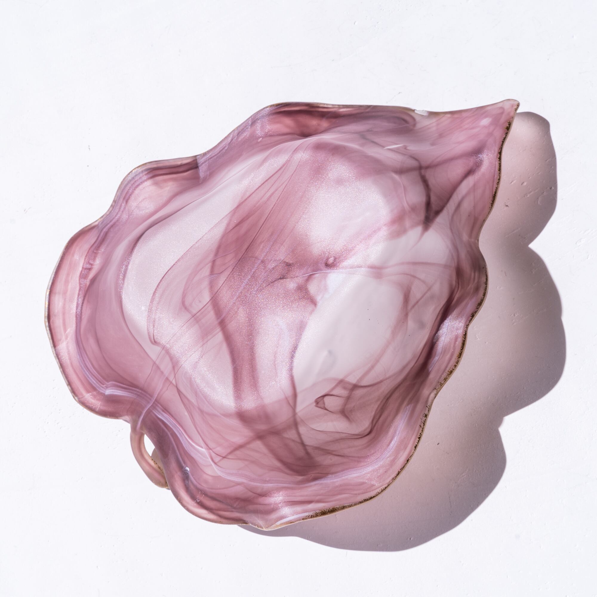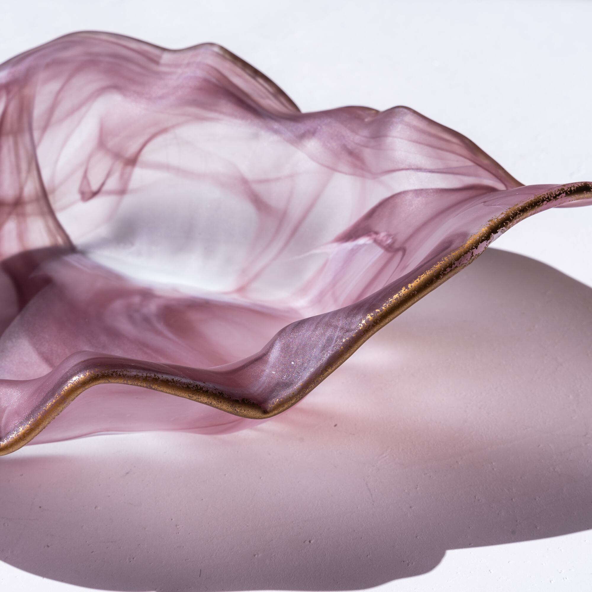 ぶどうをモチーフに、パープルとホワイトのマーブル模様で彩られた、あまーい味がしそうなマットガラス。