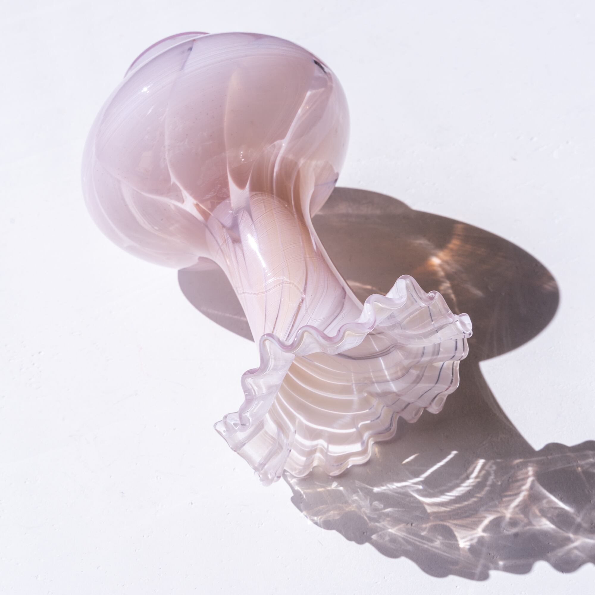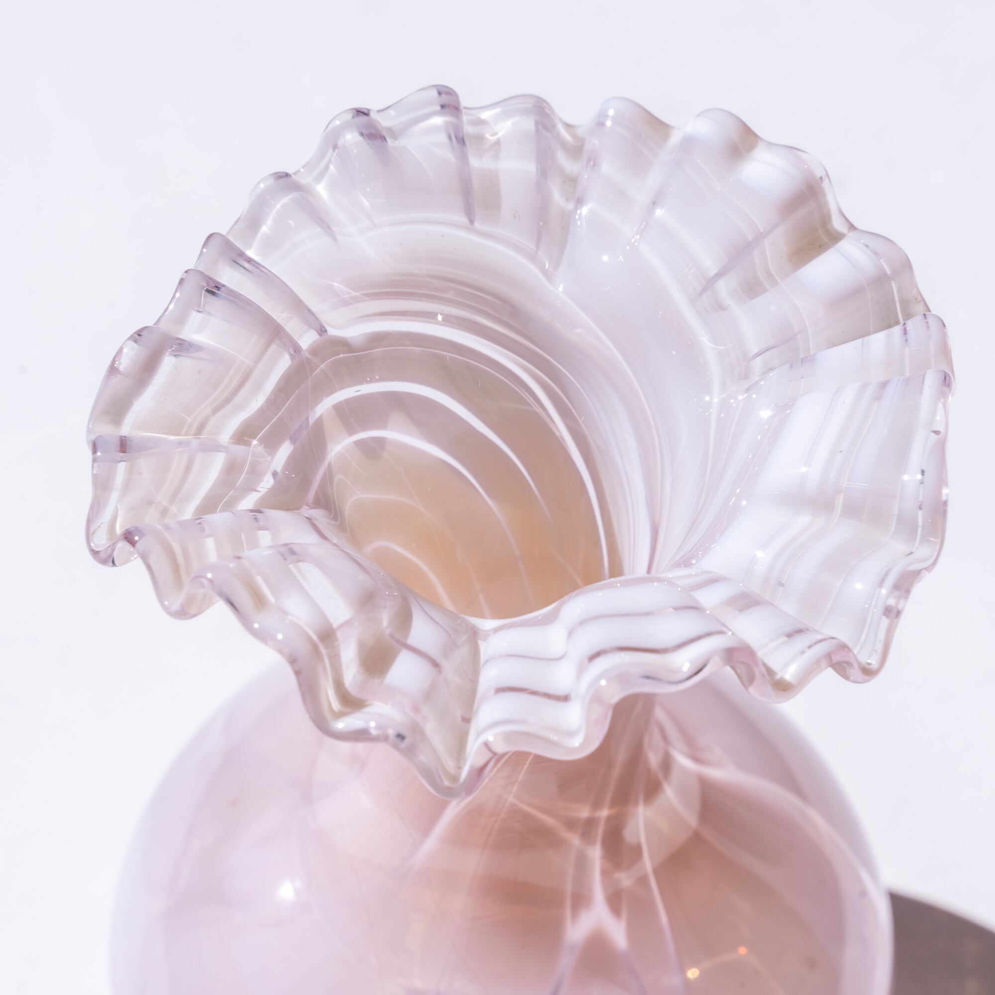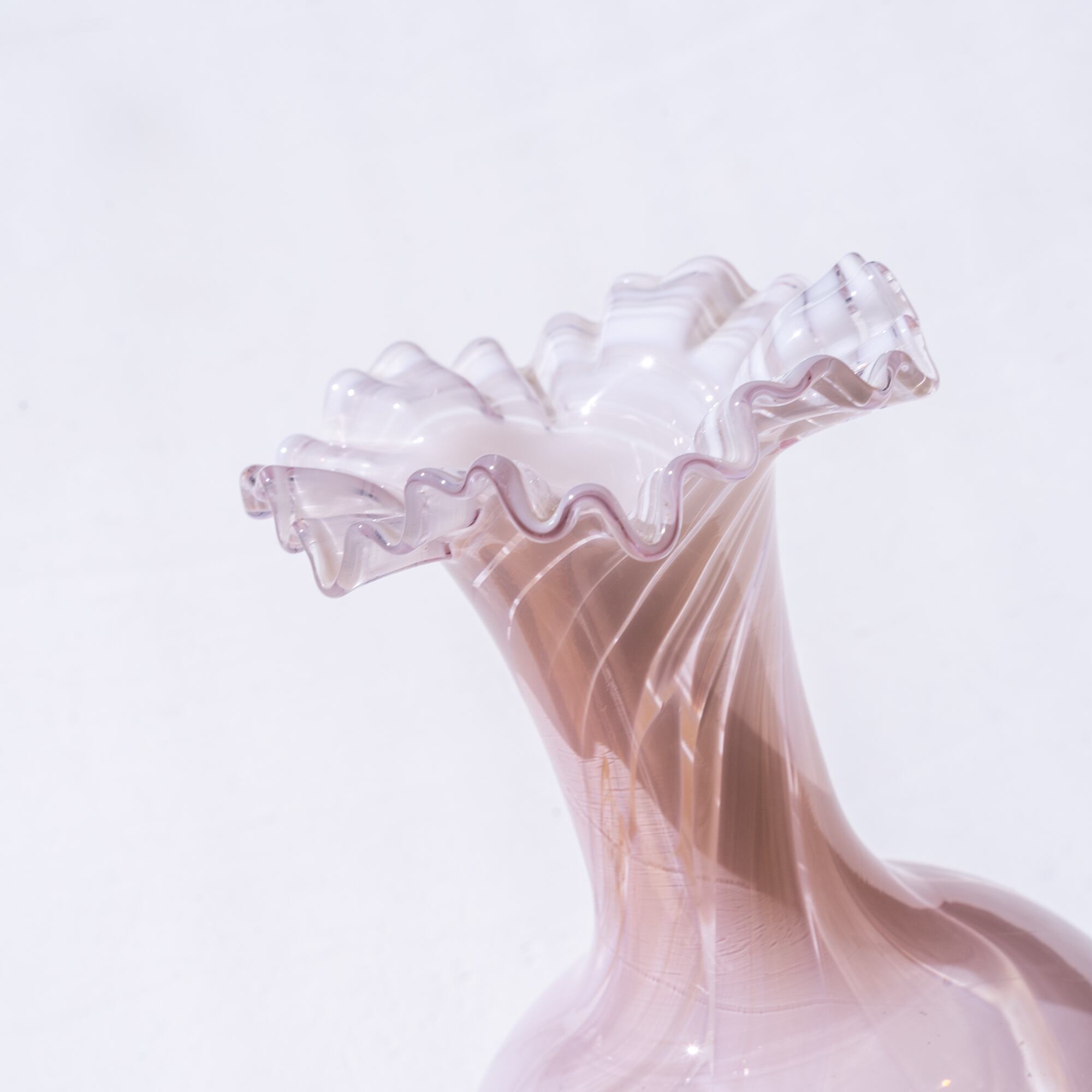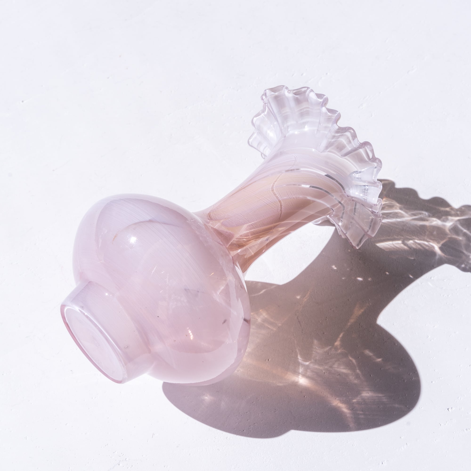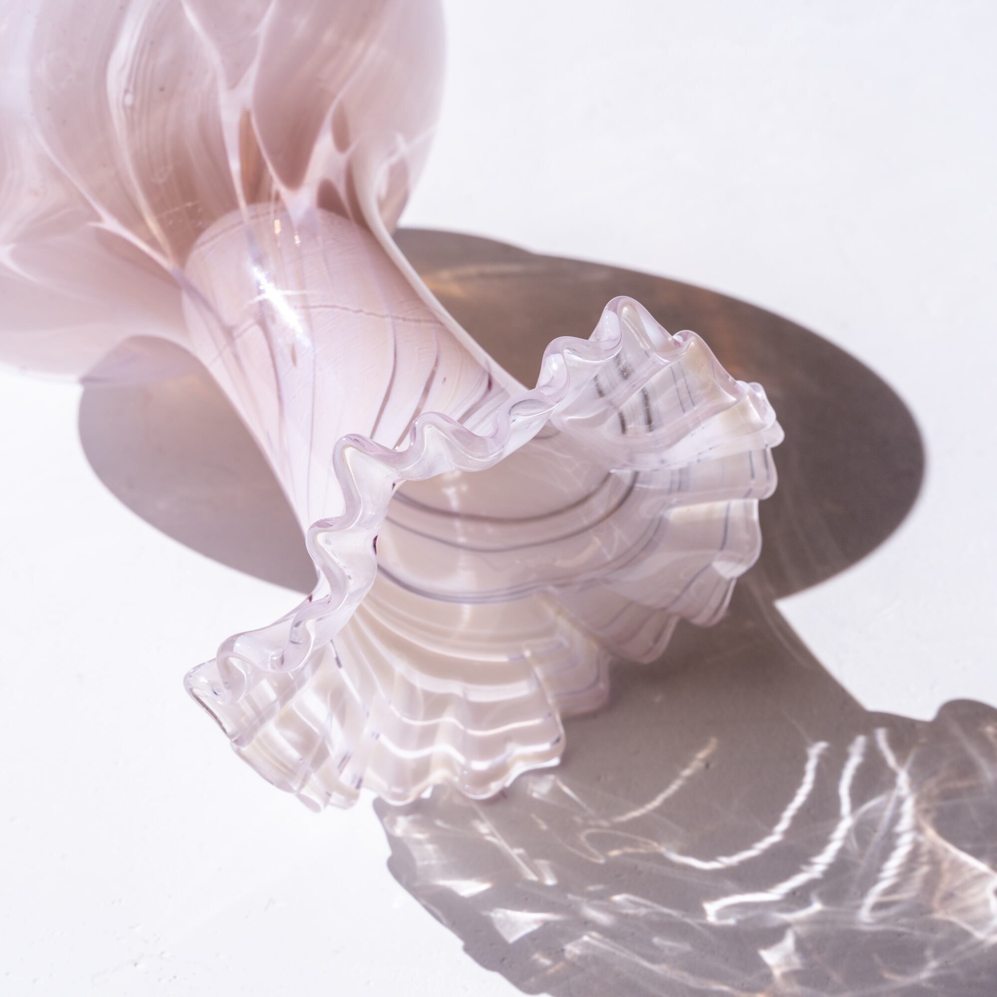 ピンクがかったクリアなガラスに、ホワイトのマーブル模様が広がる美しいデザイン。