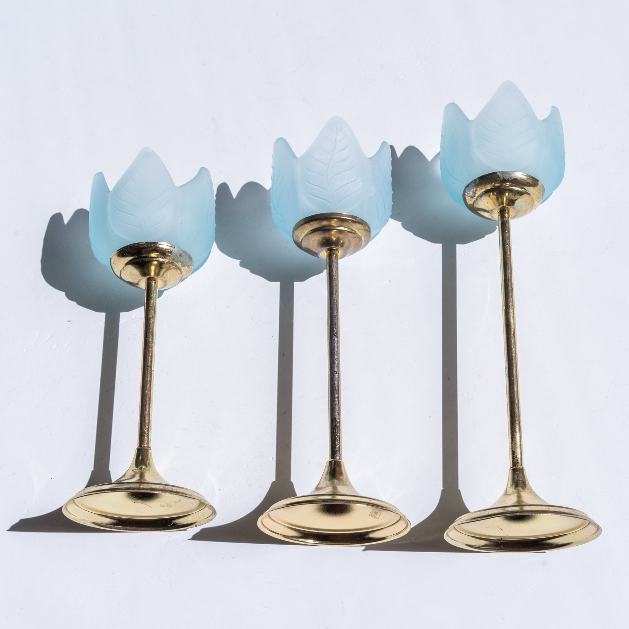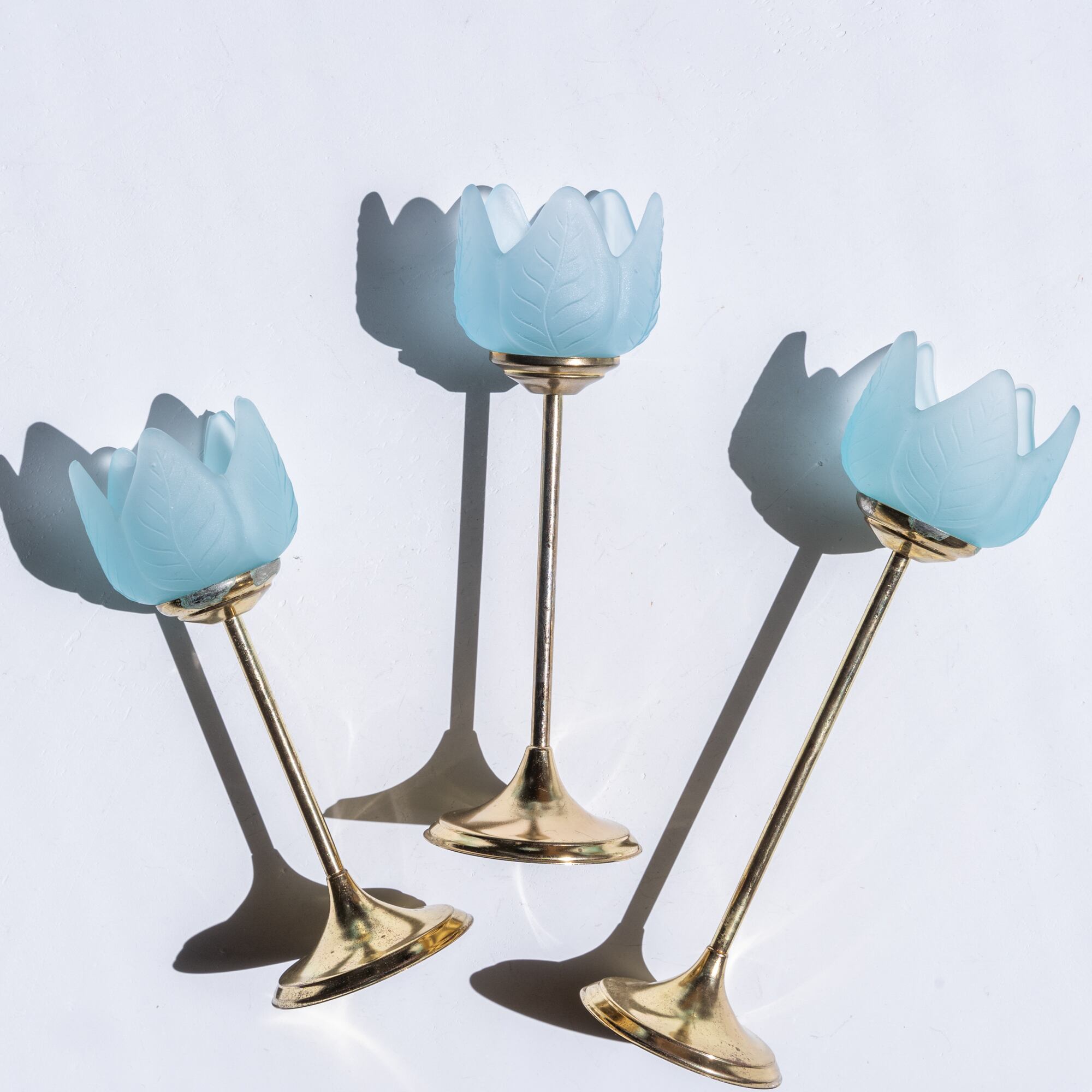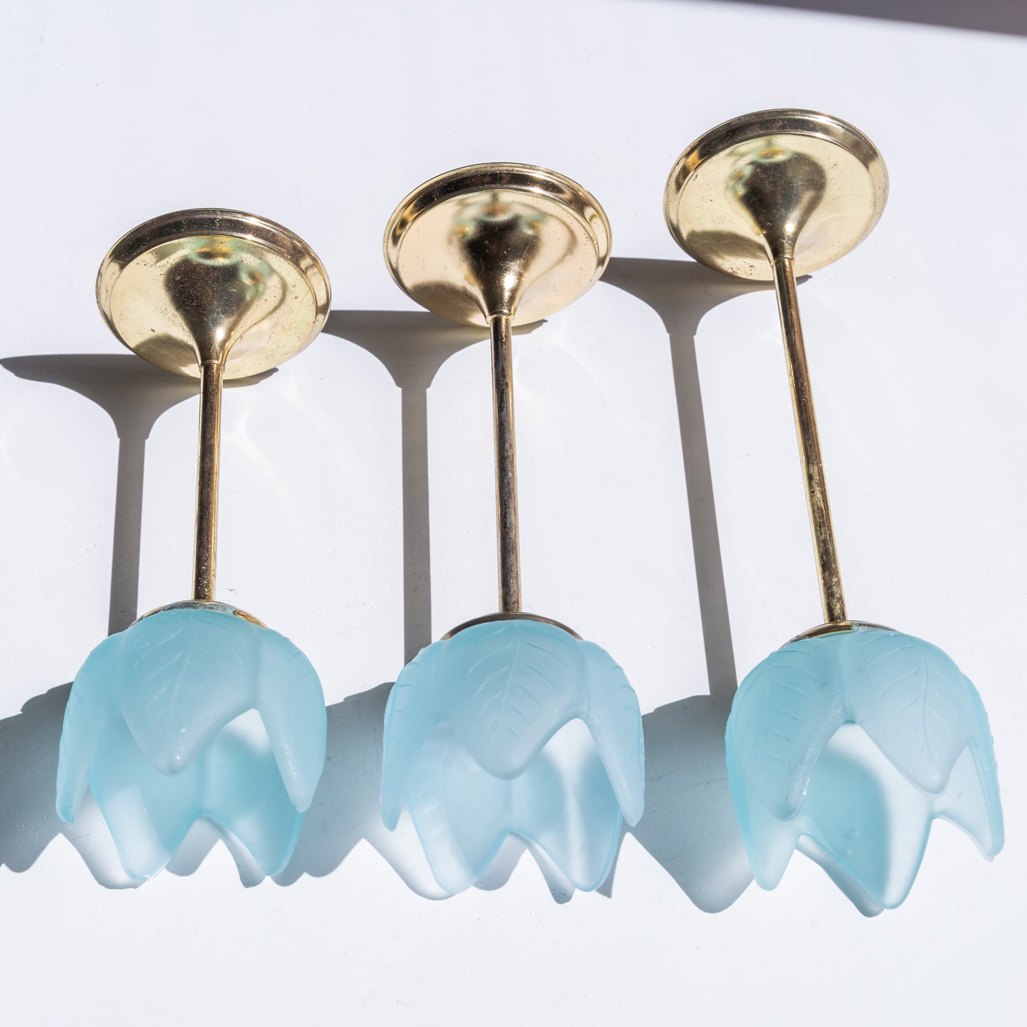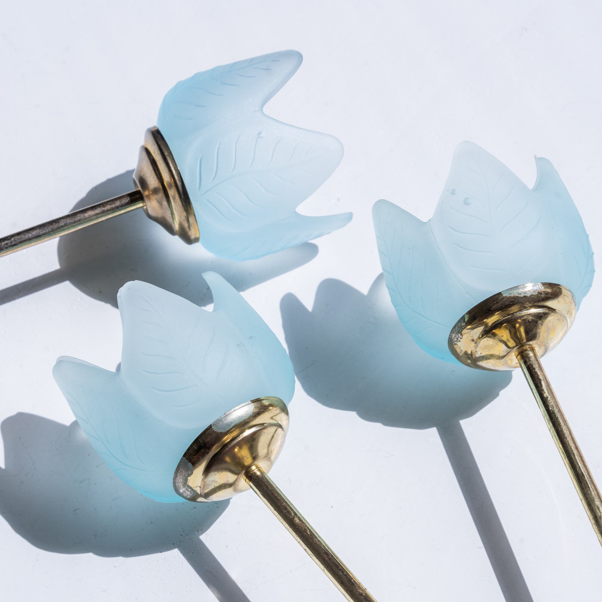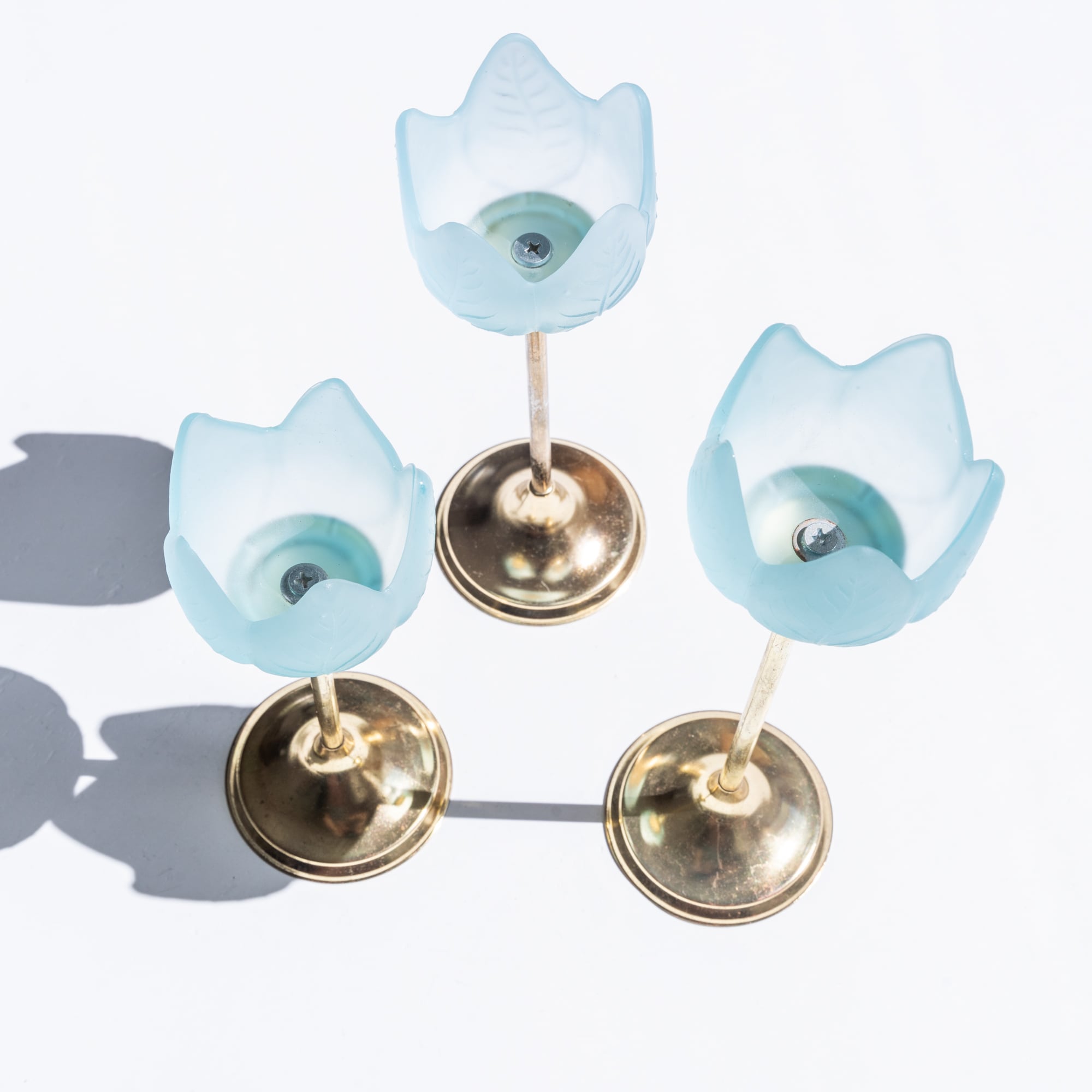 チューリップをモチーフに、お花部分はソーダブルーのマットガラス、茎は質感美しい真鍮で表現されています。