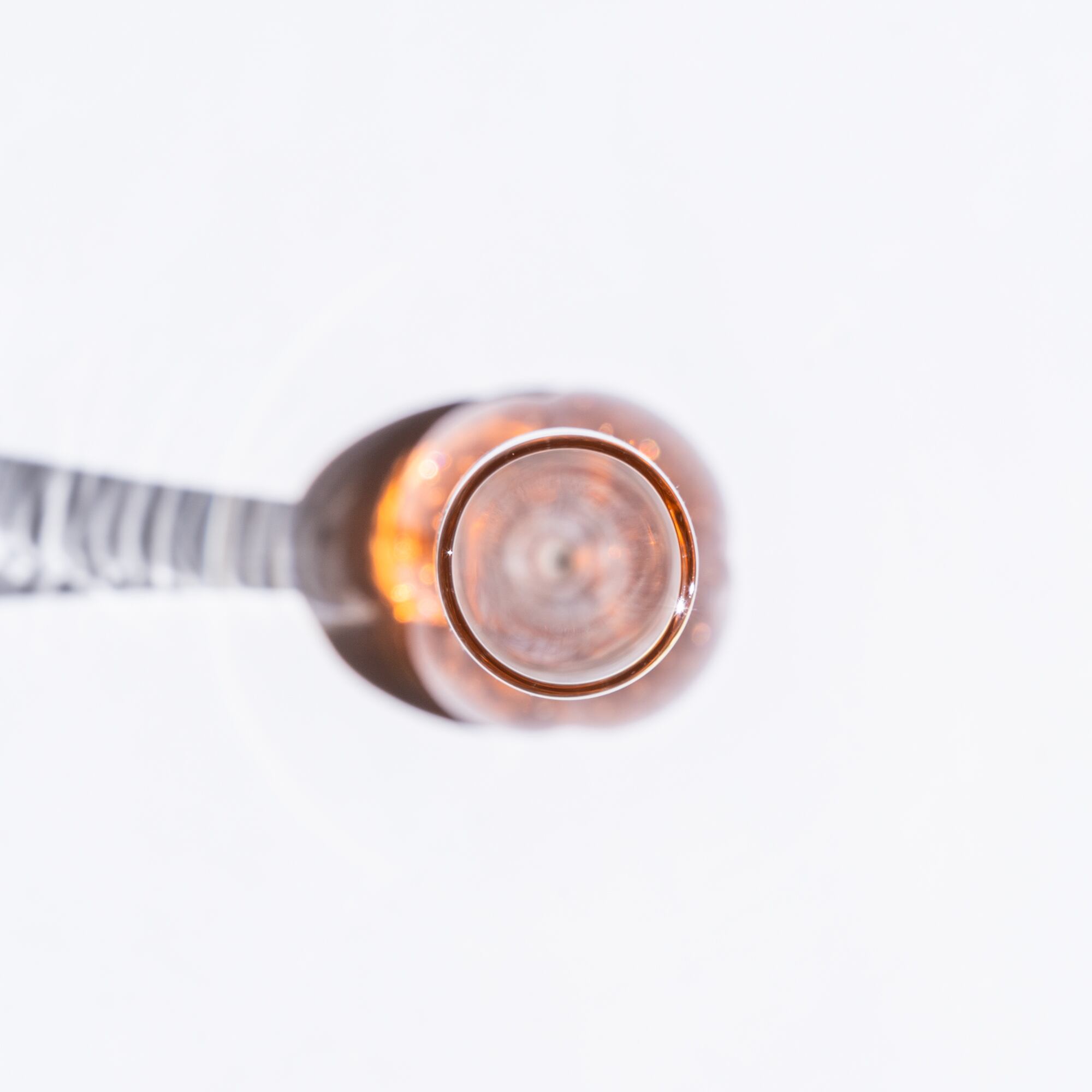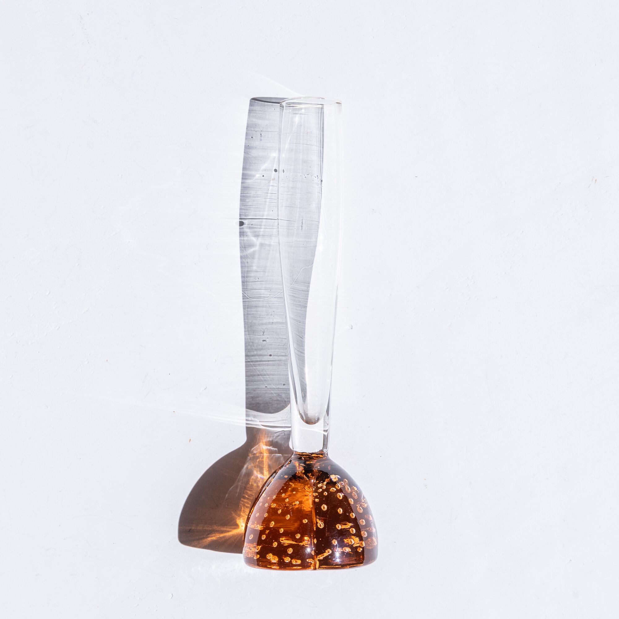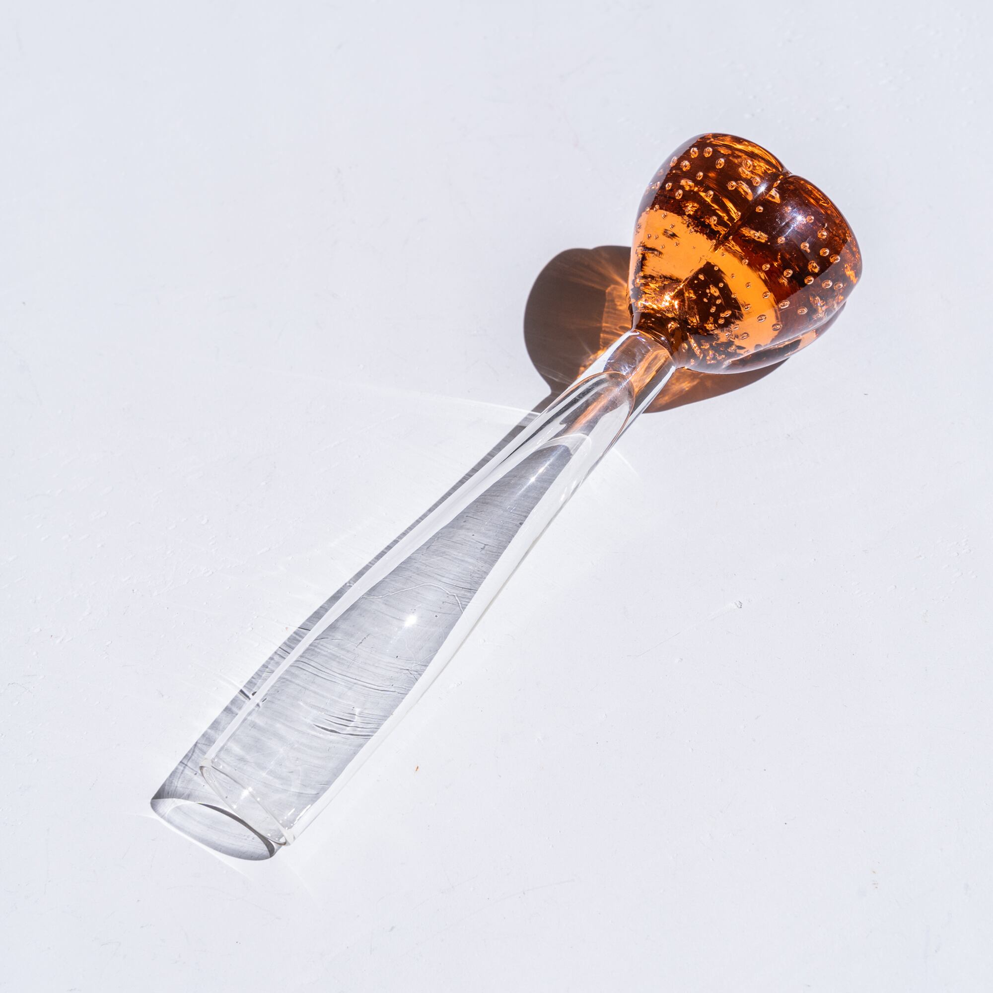 筒部分はスリムな一輪挿し、ボール部分はバブル(気泡)の入ったガラスでできており、ぽってりとしたデザイン。