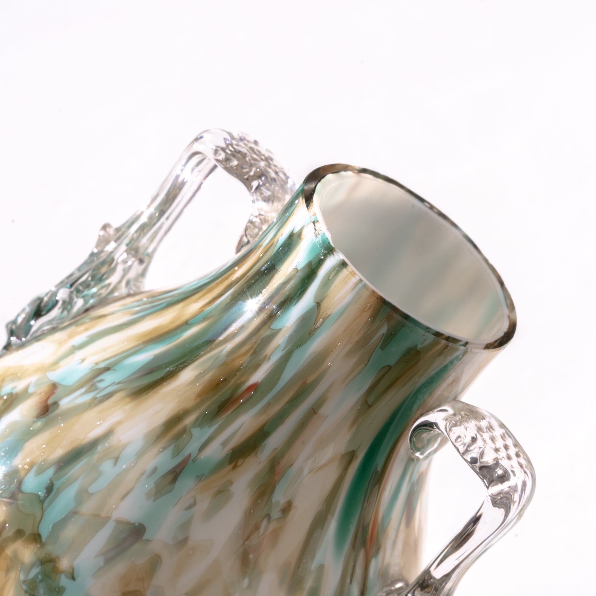 エメラルドグリーンとベージュマーブル模様が美しい色彩表現。
