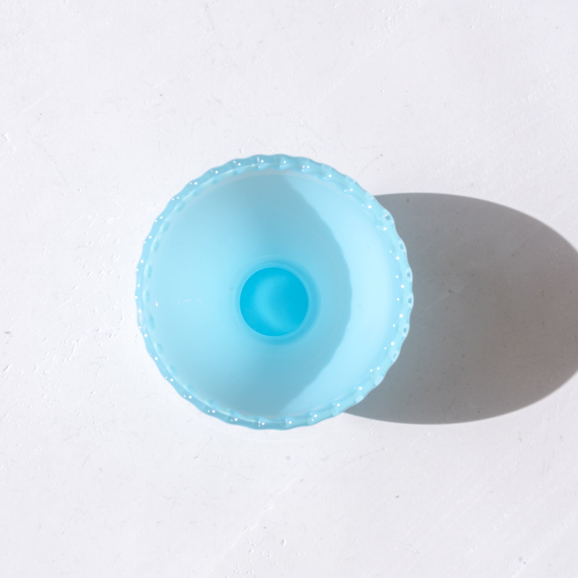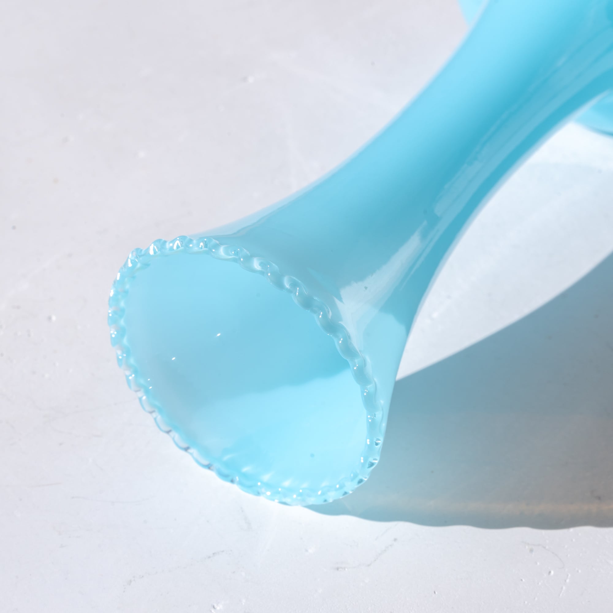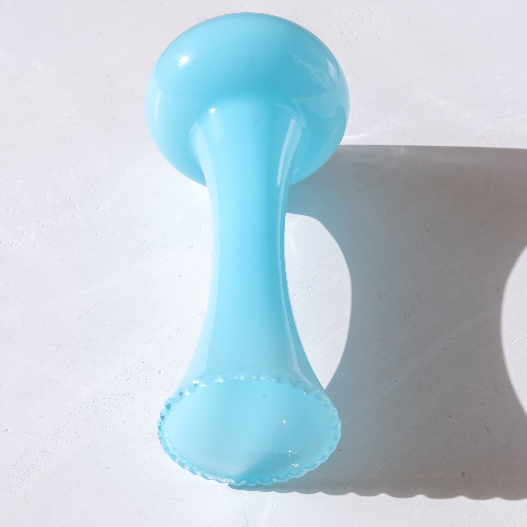 クリームソーダをイメージさせるような爽やかなブルー、まろやかな質感が美しいミッドセンチュリーな作品。