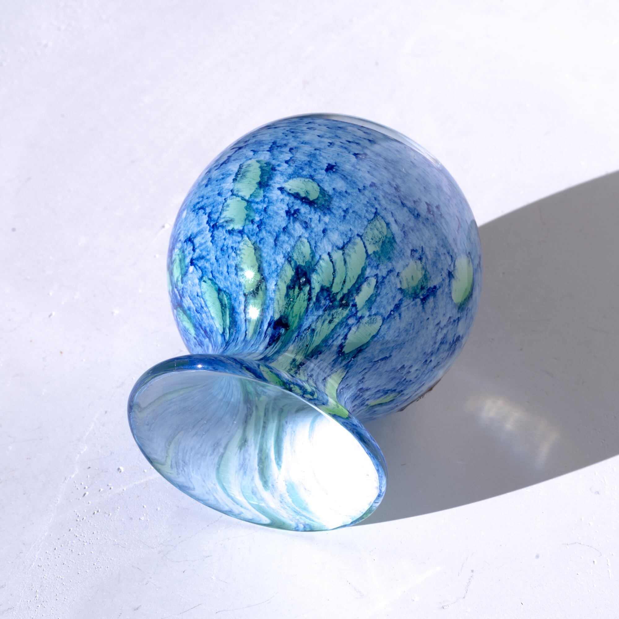 地球をイメージさせるようなブルーとグリーンのマーブル模様が魅惑的なガラスアート。