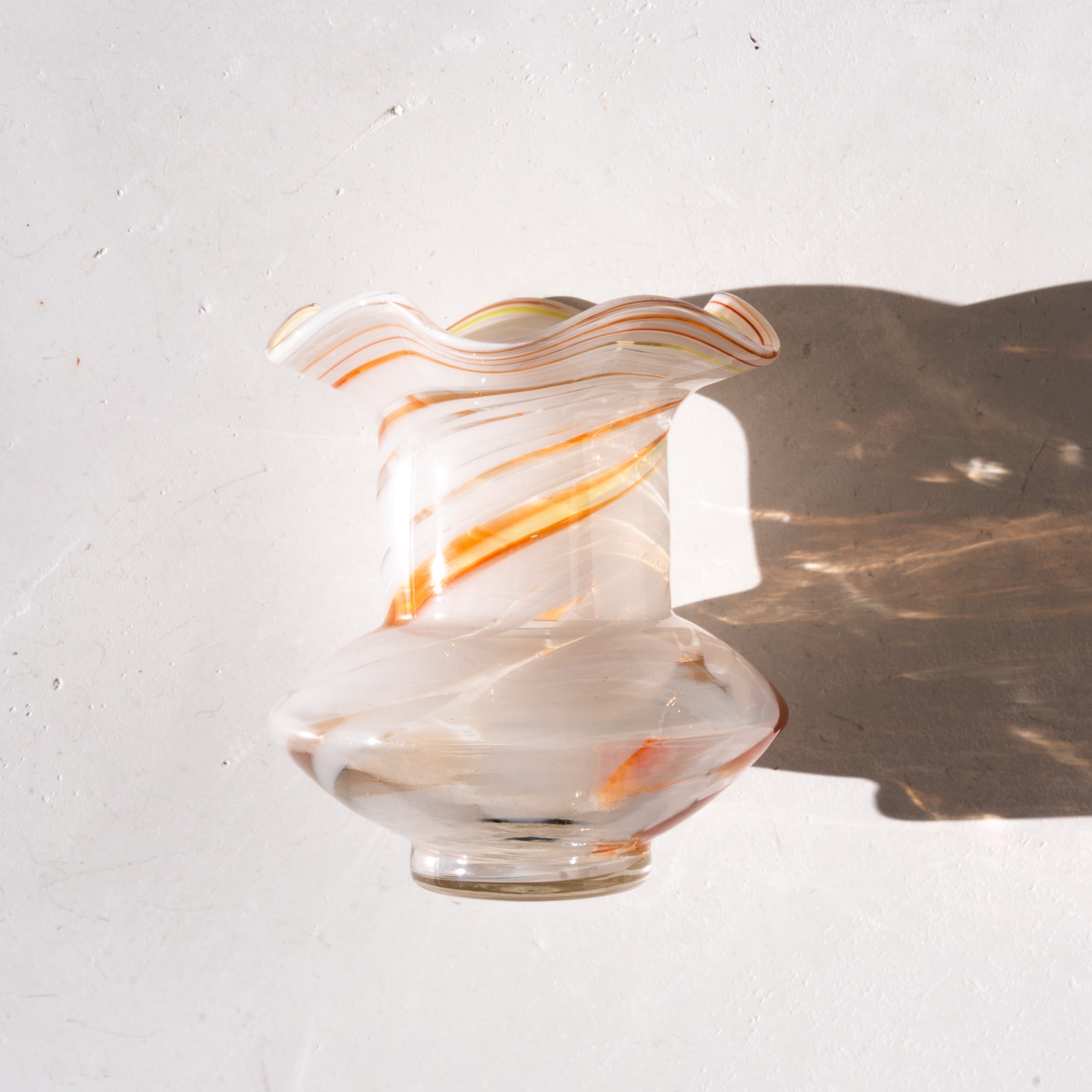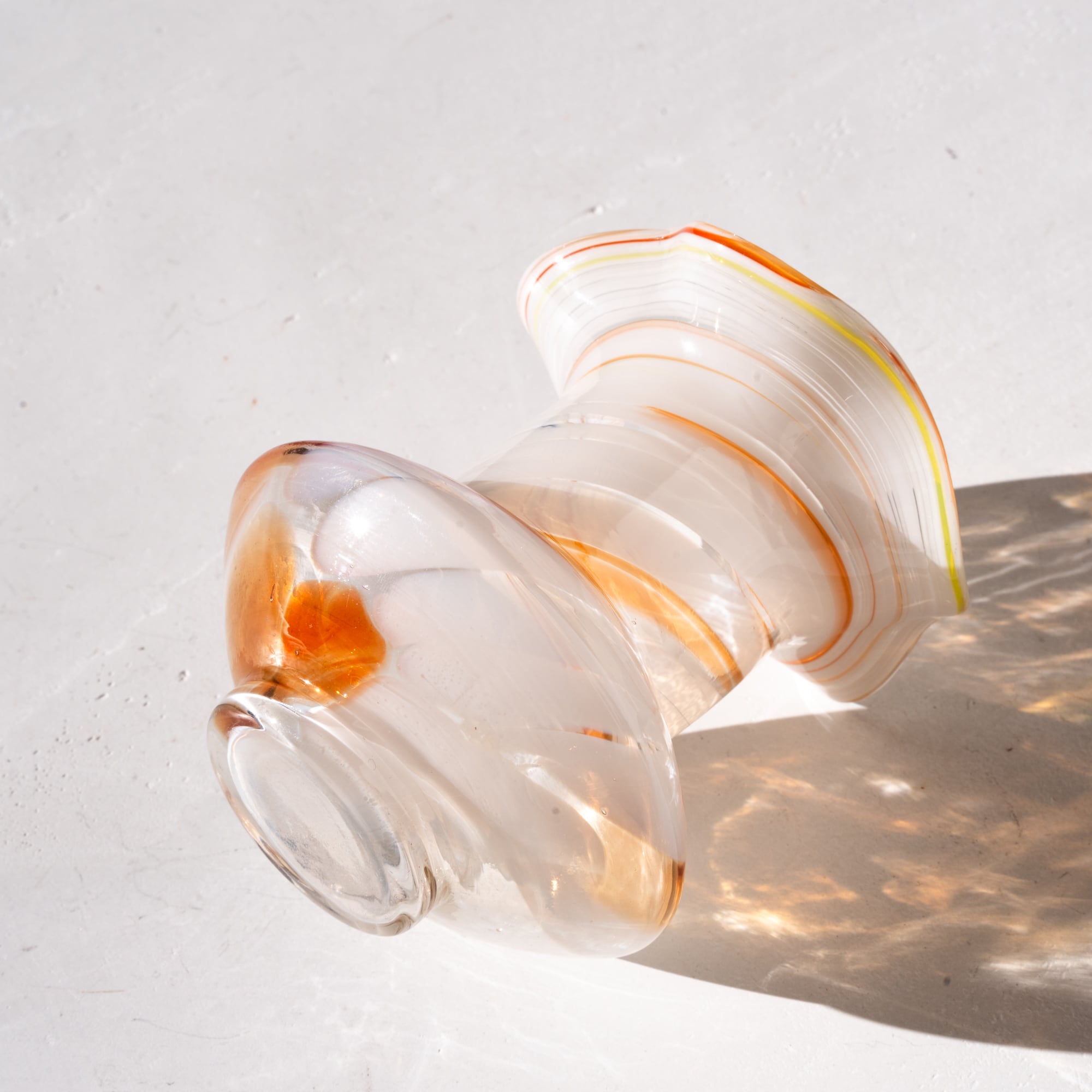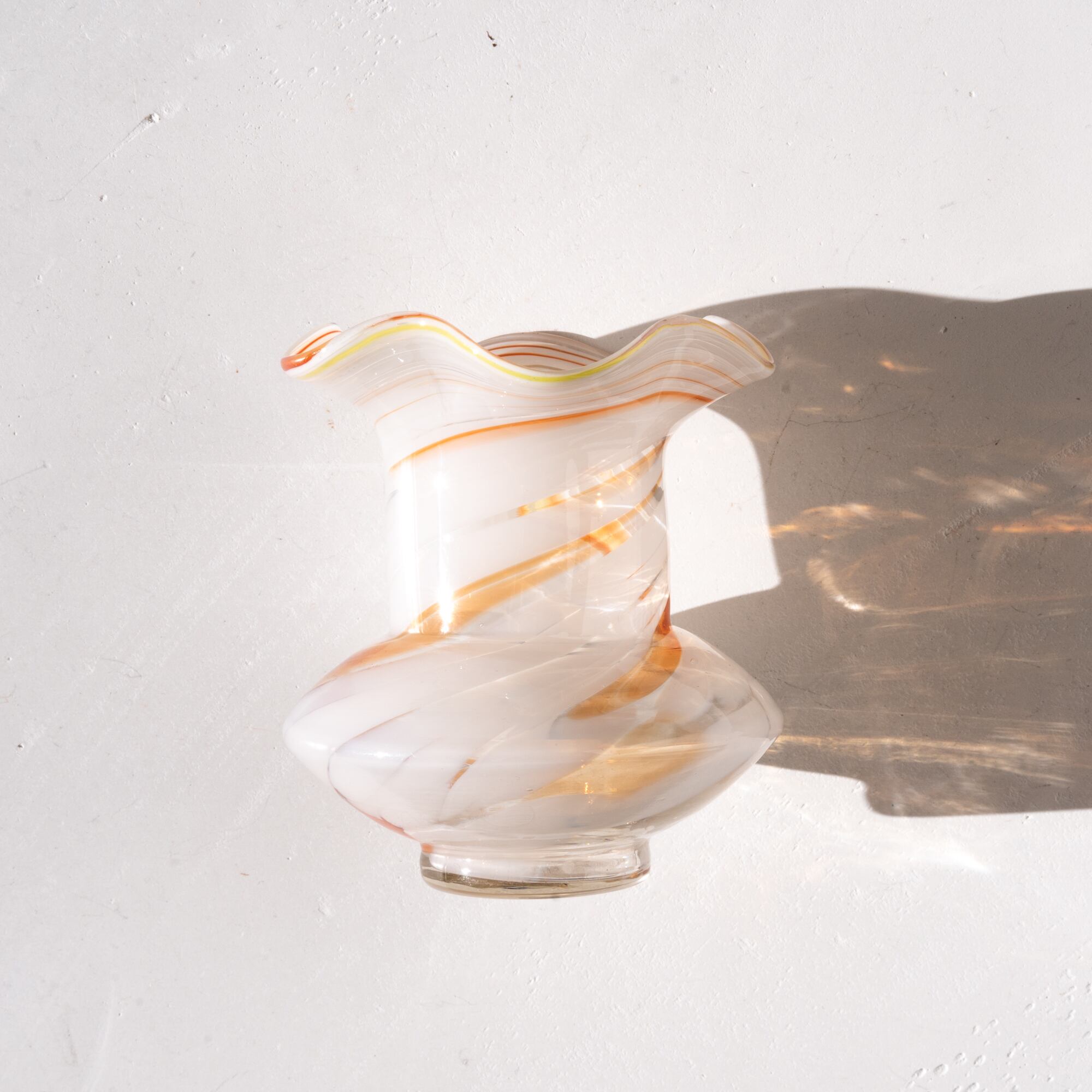 オレンジ、ホワイト、イエローが入り混じった渦巻き模様で彩られています。