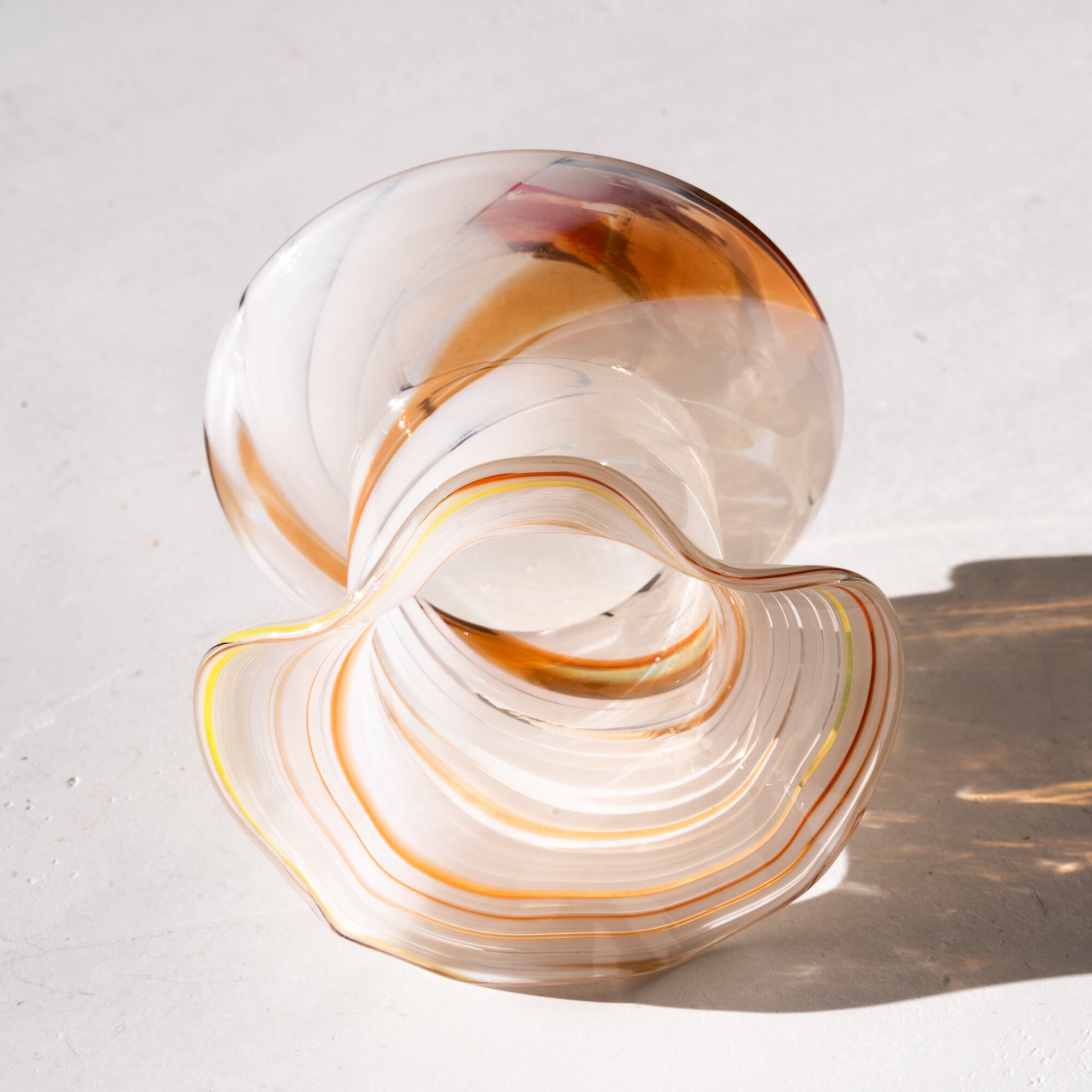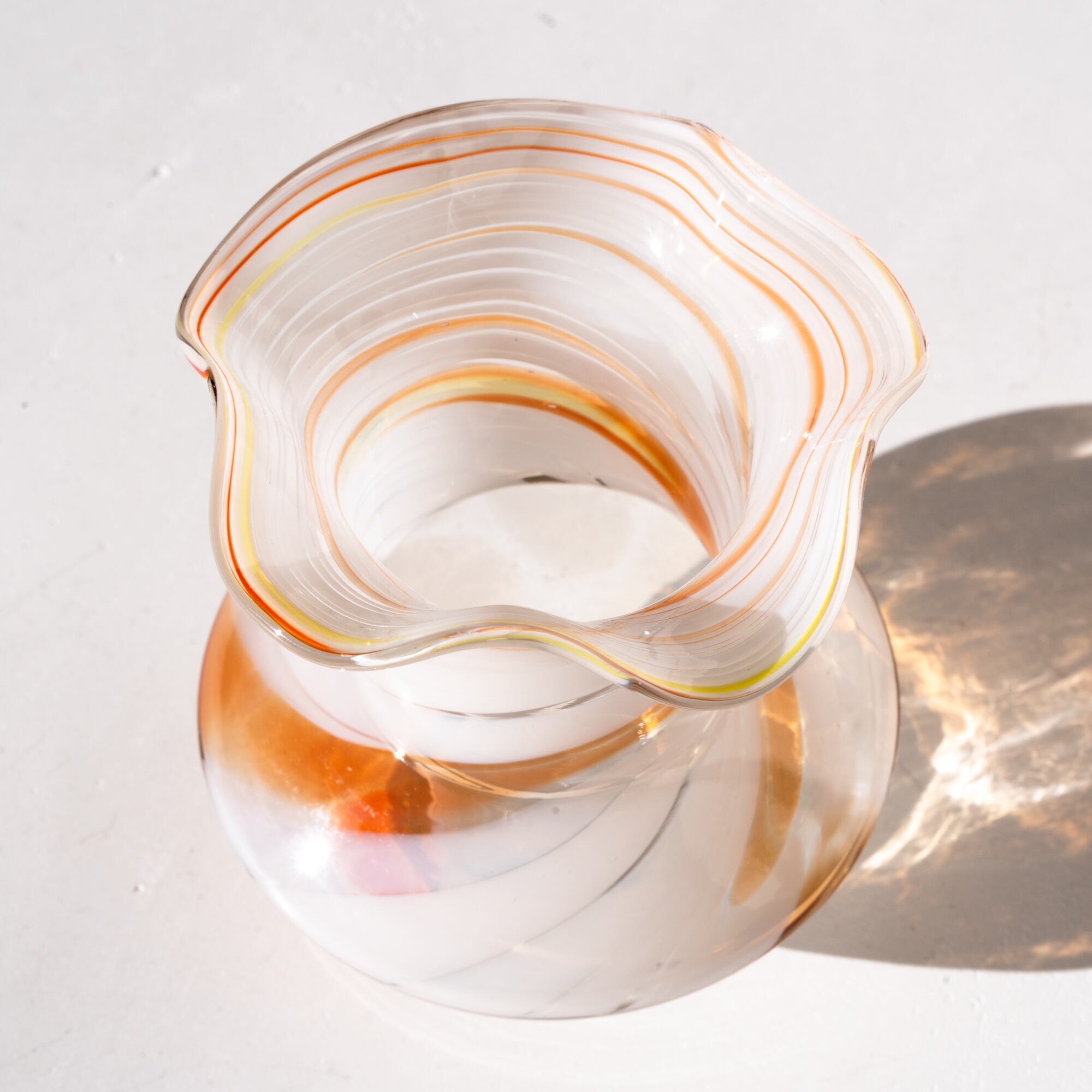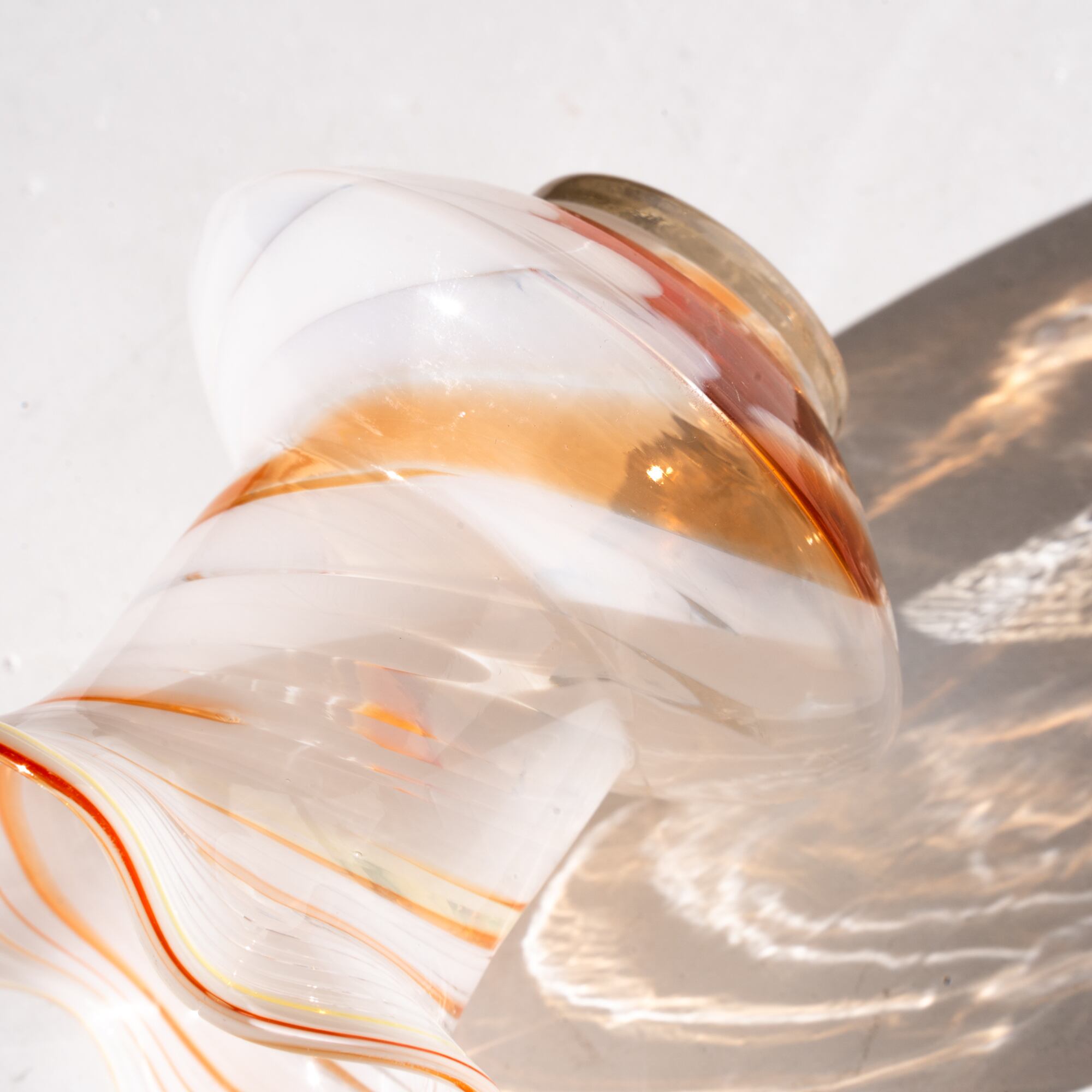 オレンジ、ホワイト、イエローが入り混じった渦巻き模様で彩られています。