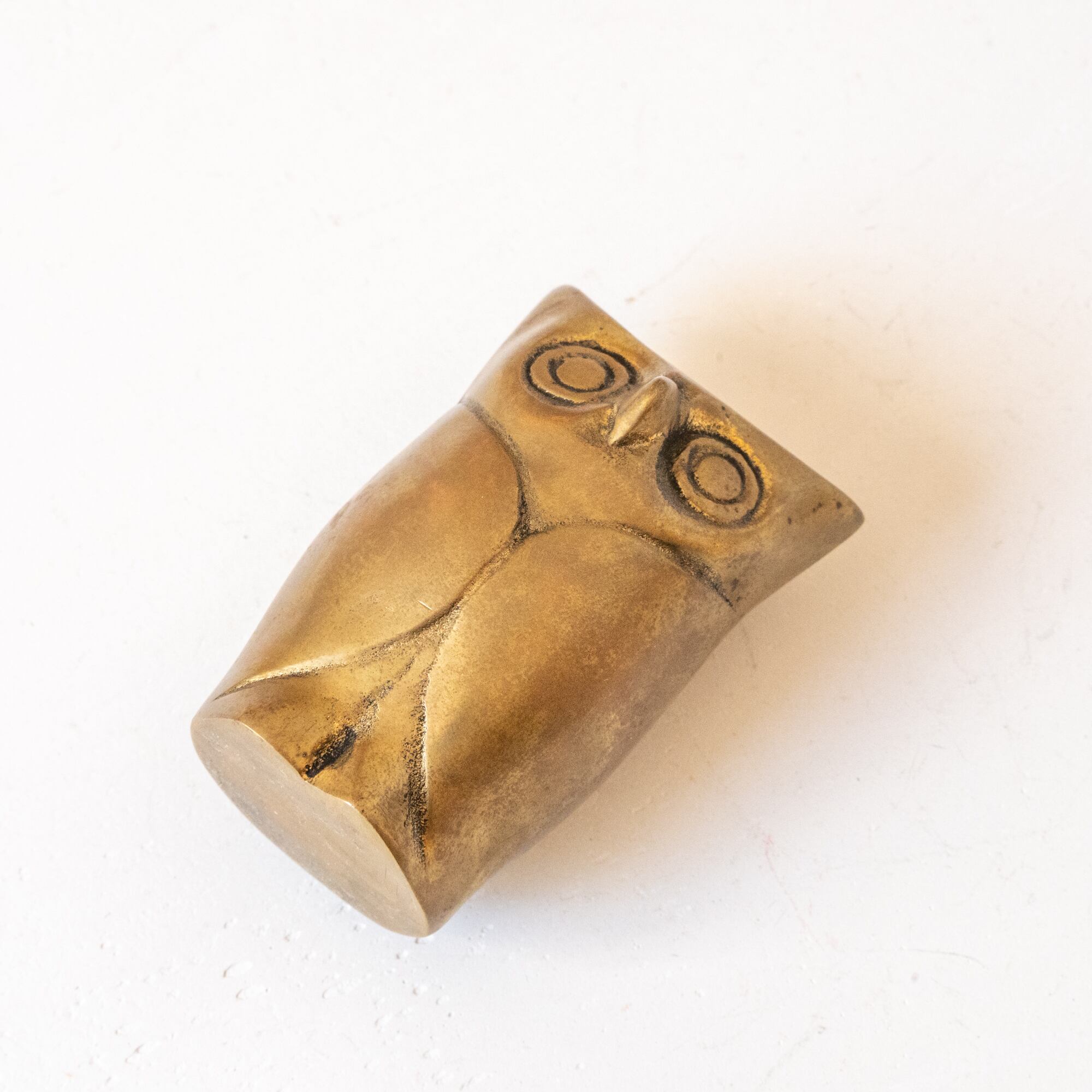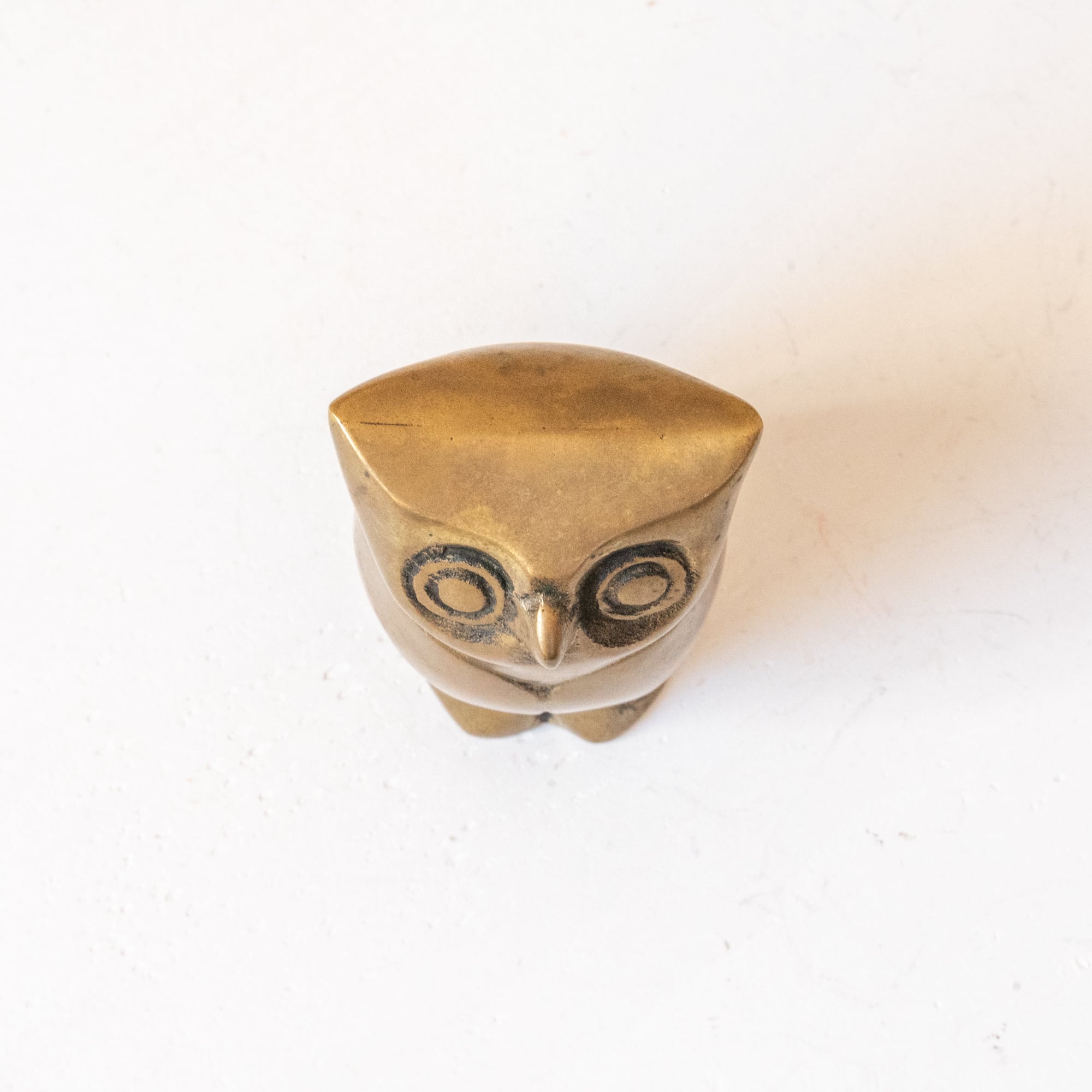 フクロウが佇んでいる愛嬌のあるデザイン、真鍮の味わい深さが魅力的。