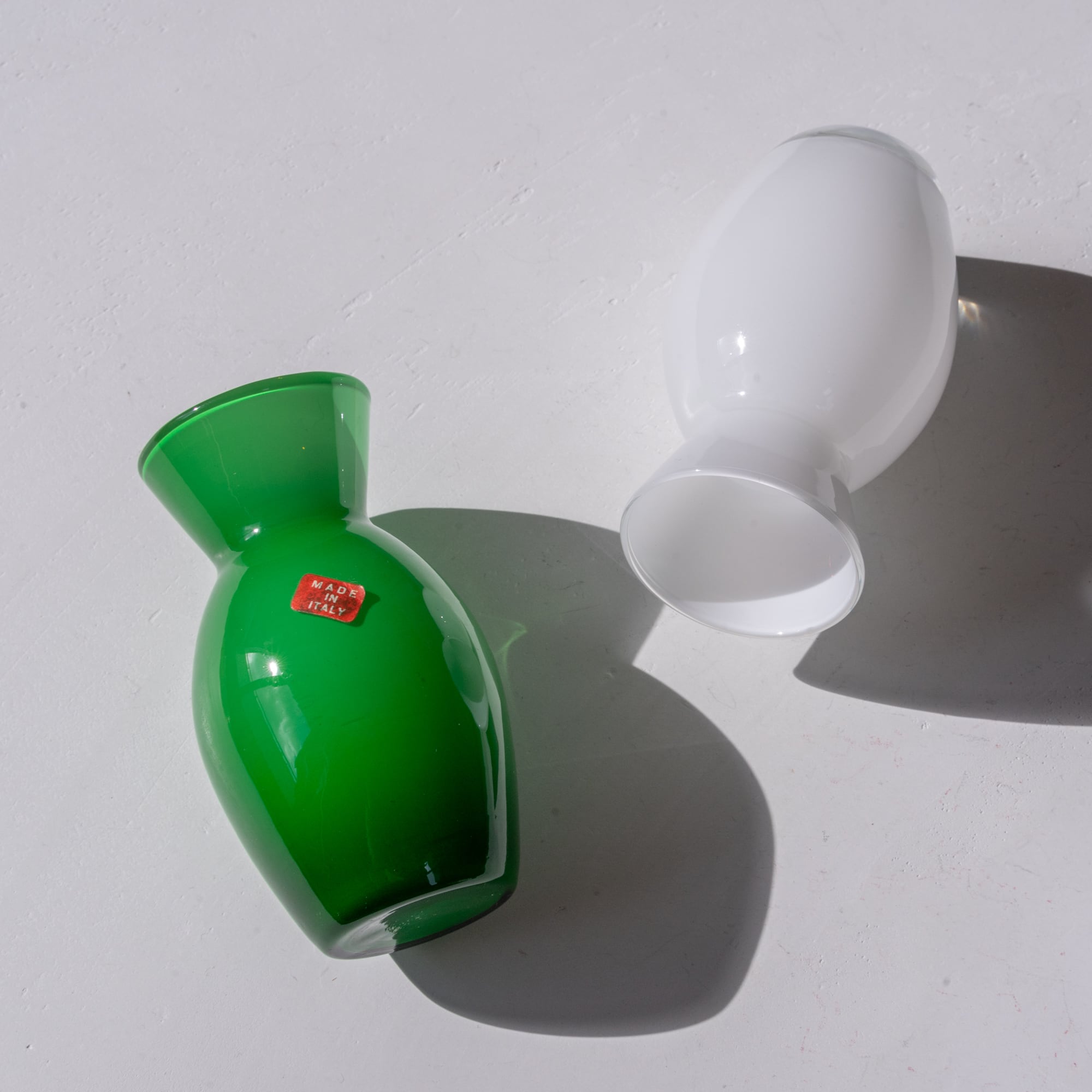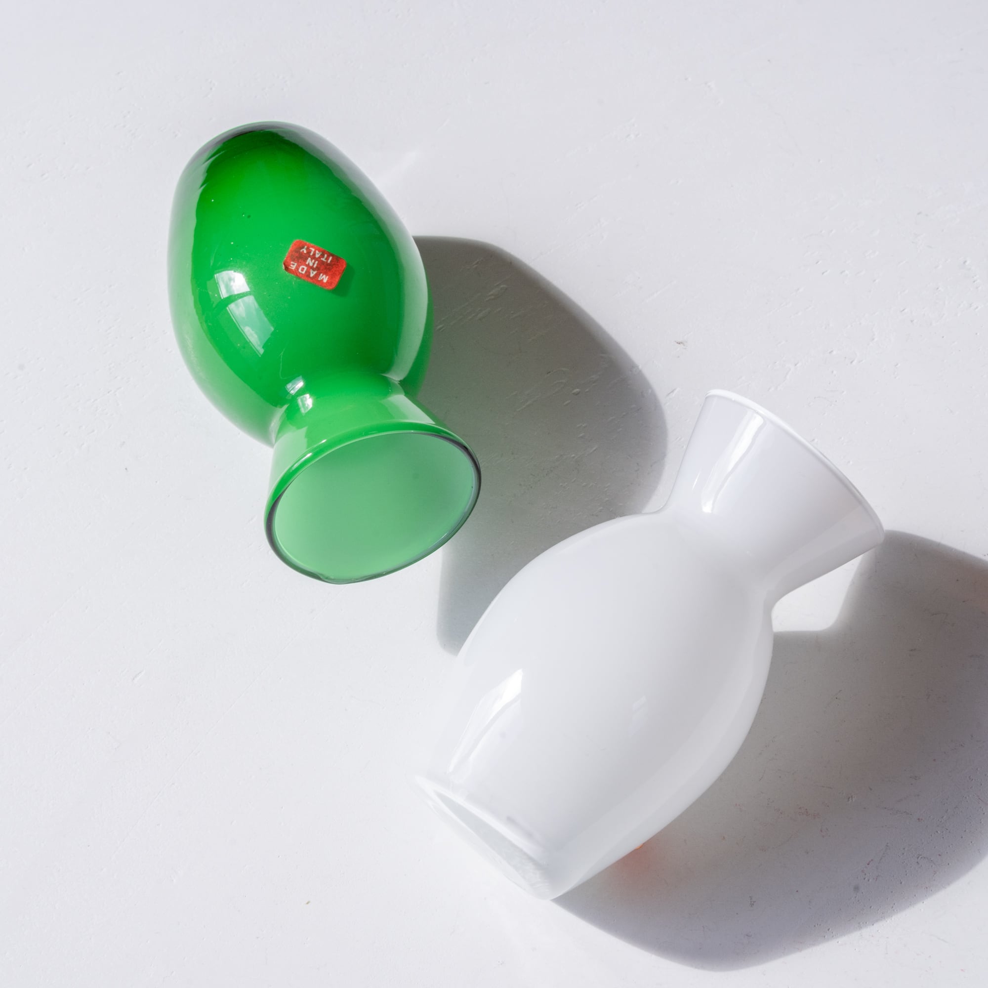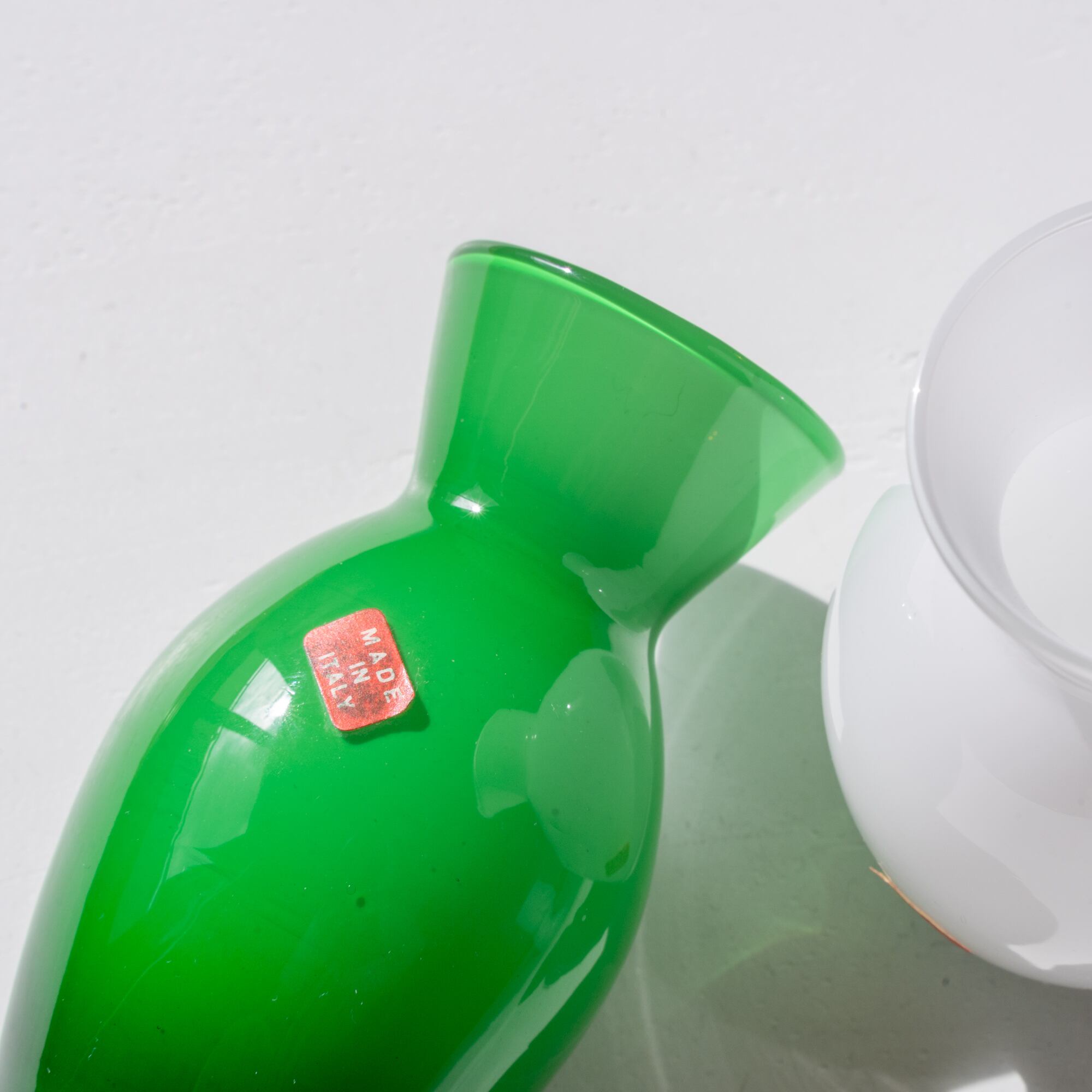 味わい深いエメラルドグリーンとホワイト、とろみあるミルキーな質感が美しいガラスアート。